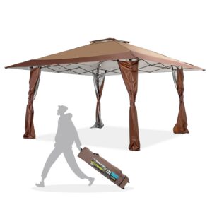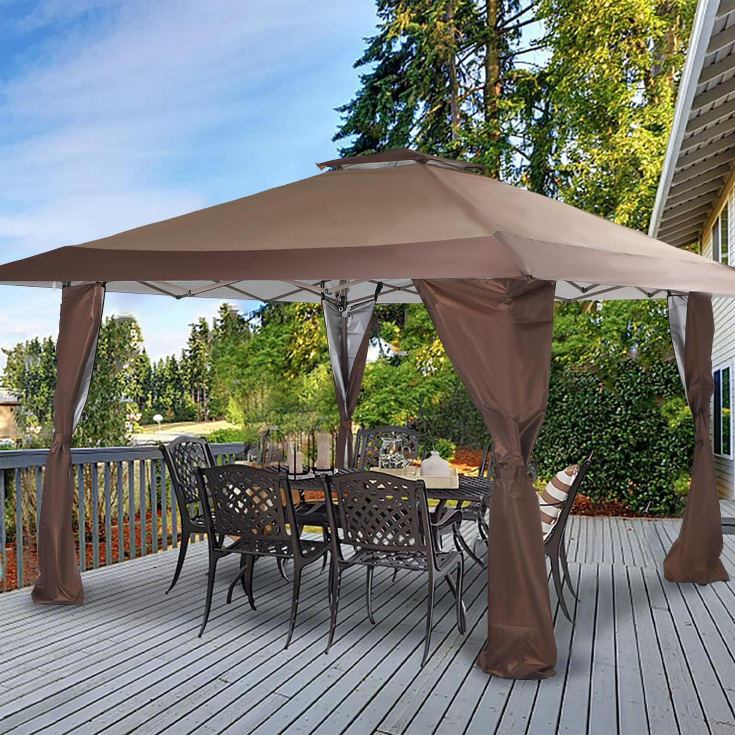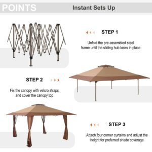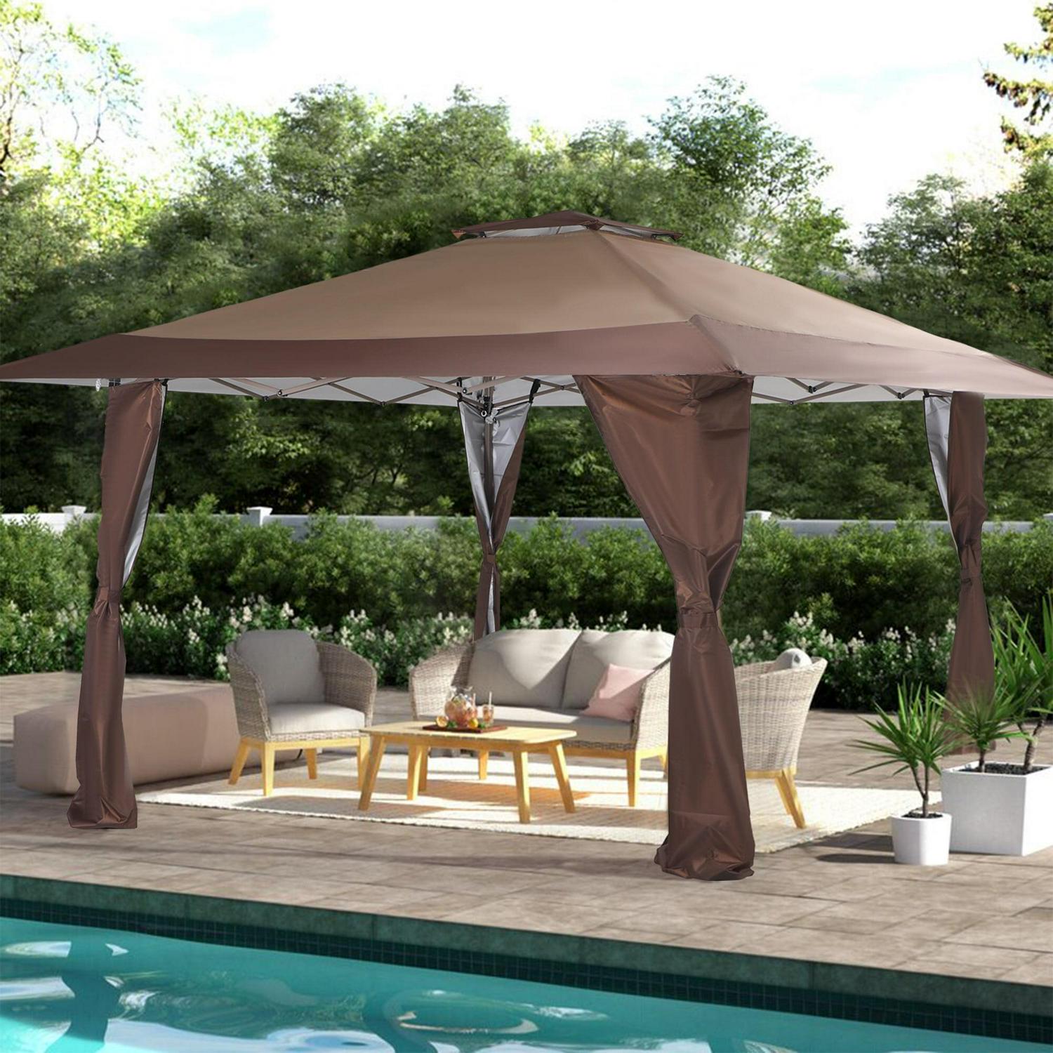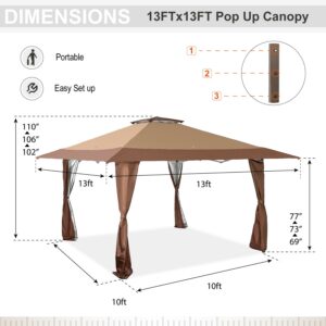 MF Studio 13 x 13ft Pop Up Canopy Outdoor Gazebo Canopy Tents for Party with Wheeled Carry Bag Brown