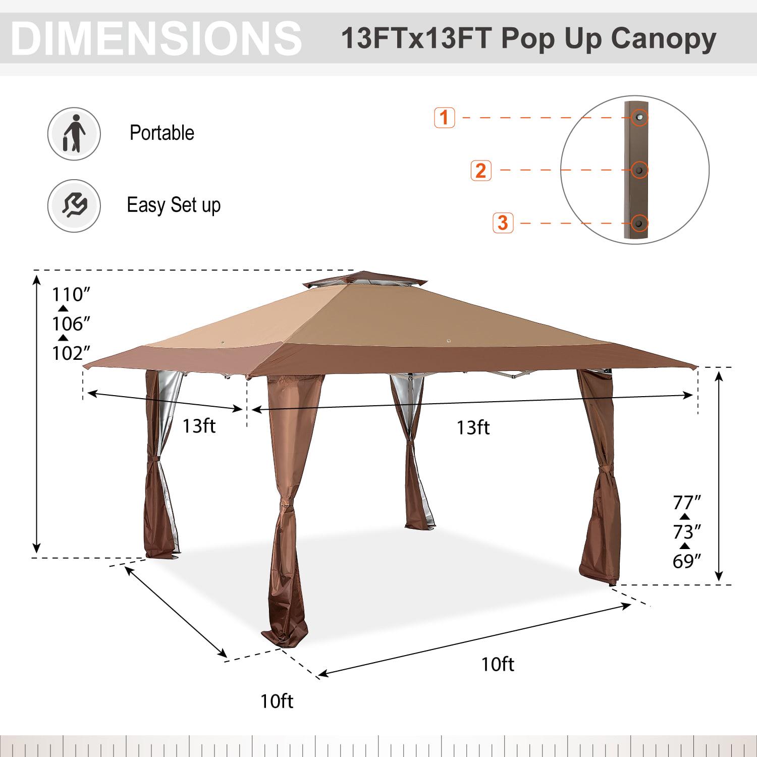 - Canopy Size: 13′ x 13′