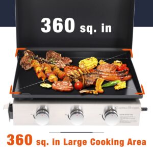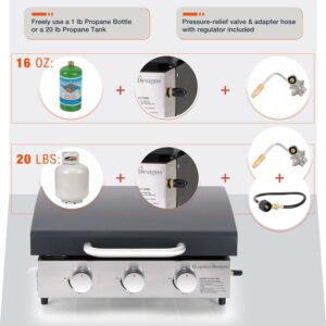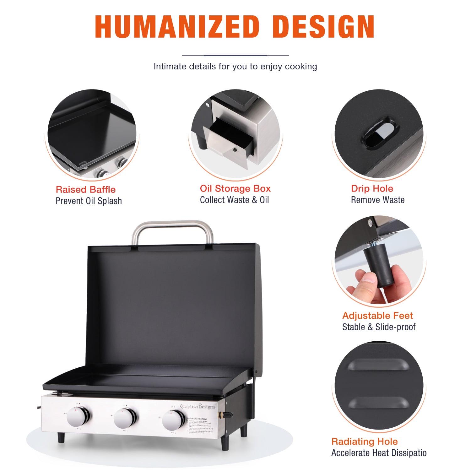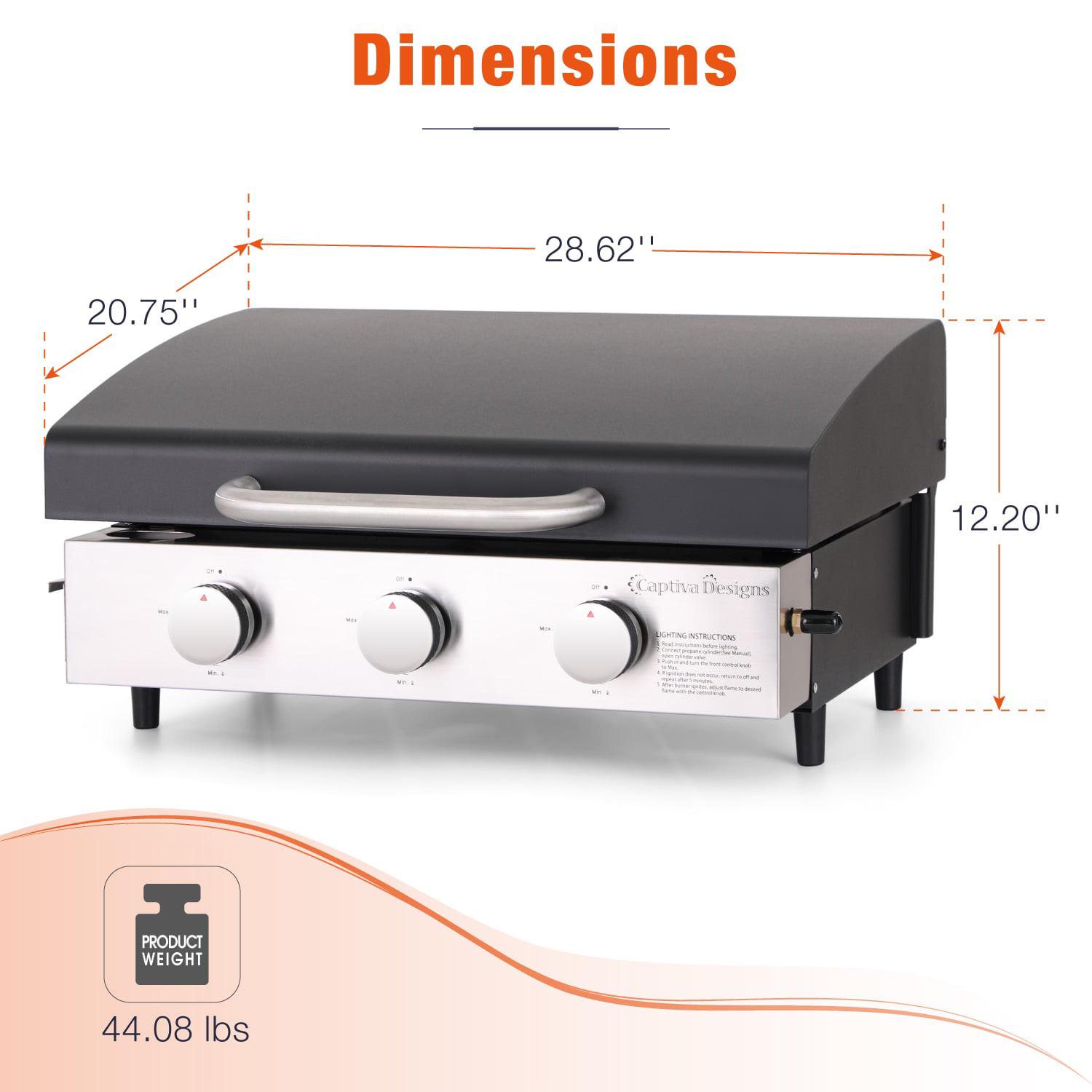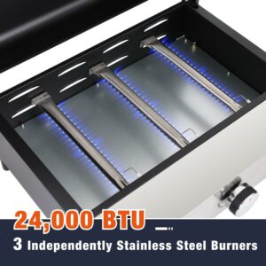 MF Studio 22-Inch Tabletop Griddle Portable Propane Gas Griddle with 3 Burners – Black