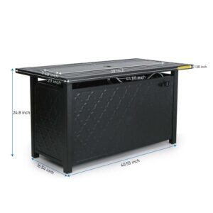 – Heat-resistant for added safety Ourfire pit table is made of durable metal material and uses multiple processes to heat protection. The tabletop material with thermal insulation design has passed fire-proof test
