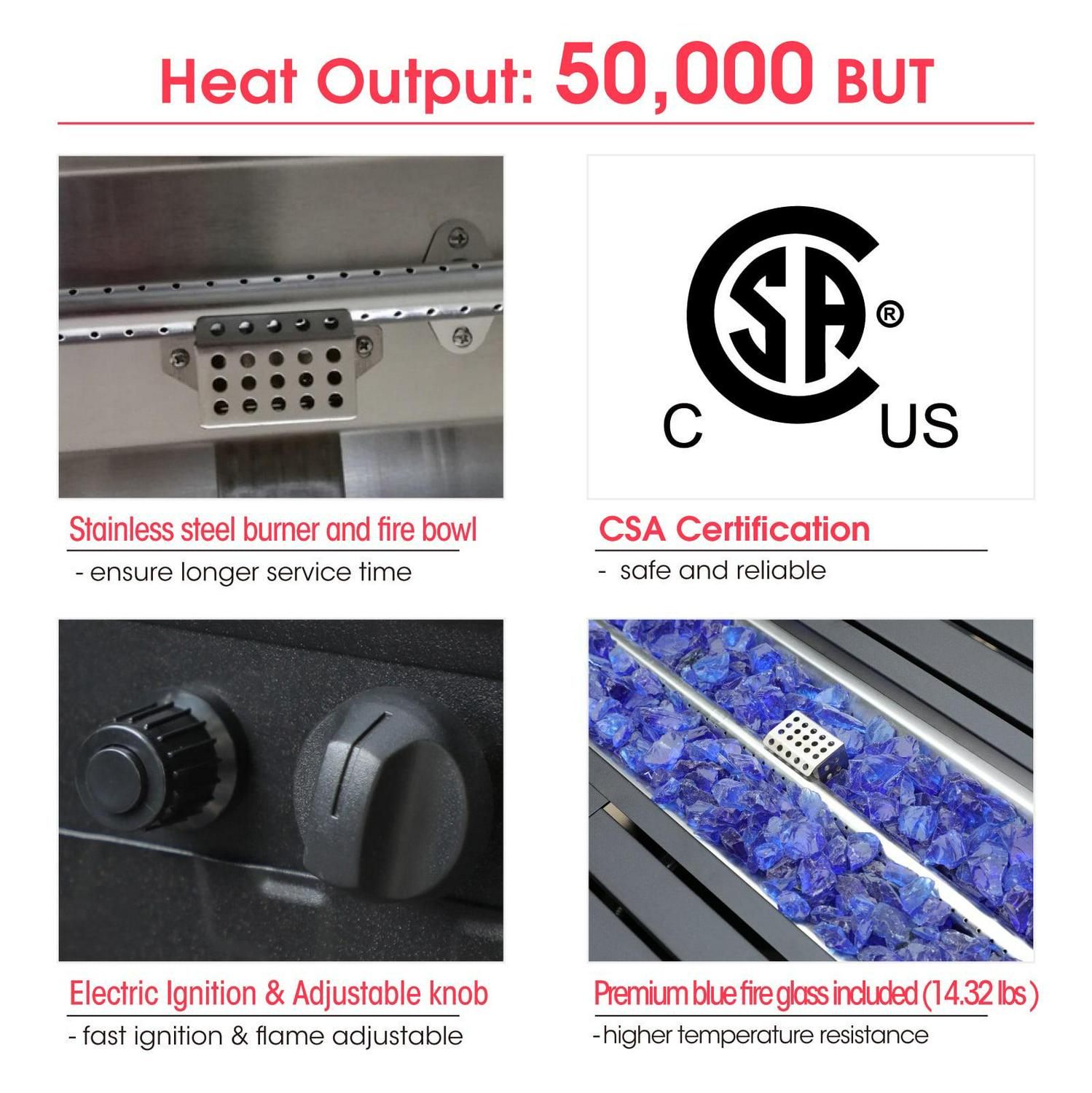 – Safe & Stable Heat Output CSA approved propane fire pit is 50,000BTU heat outputby using propane fuel to provide stable and clean burning without ash and smog.