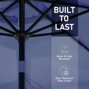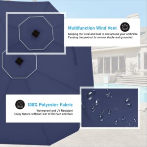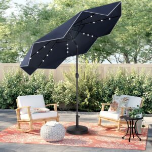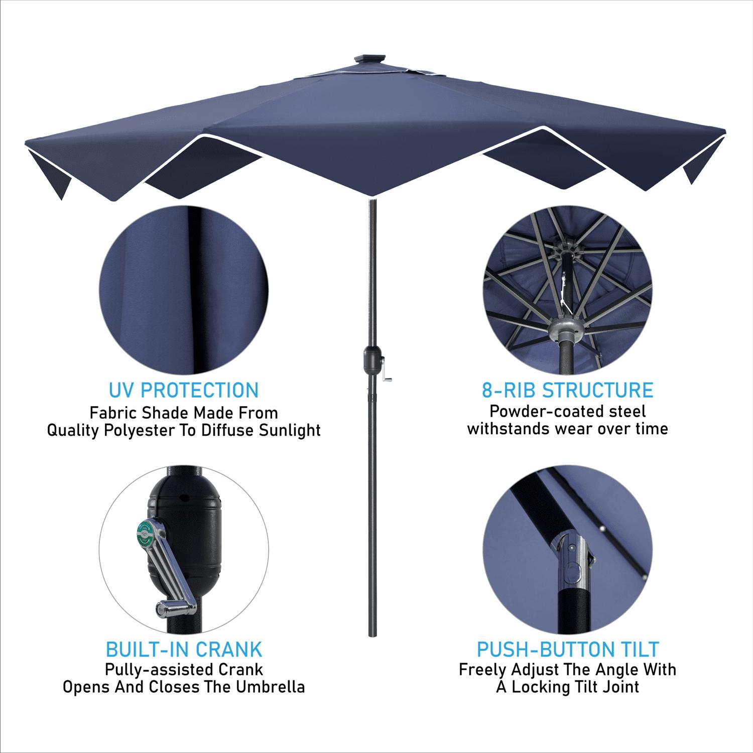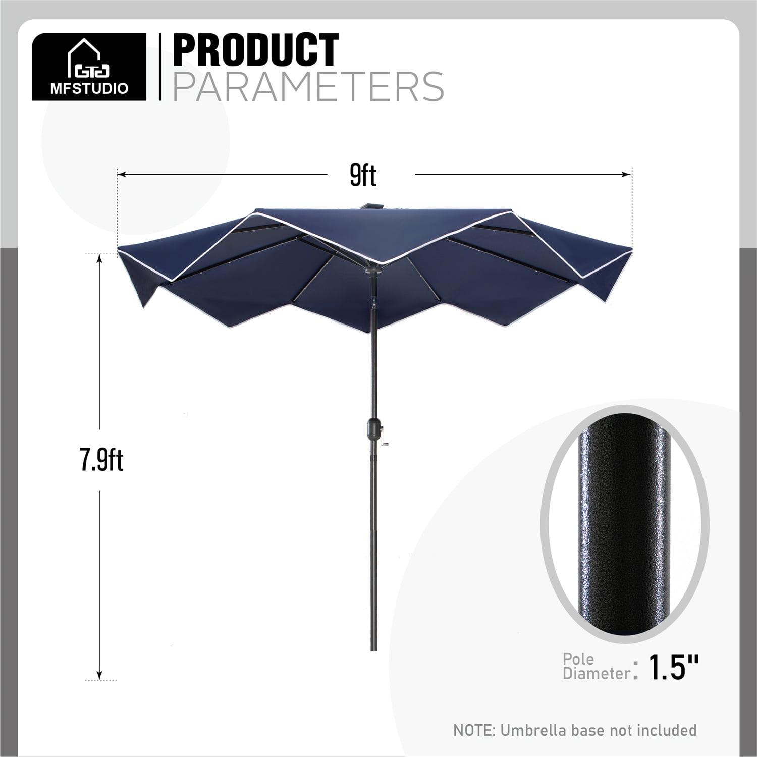 MF Studio 9 Ft Patio Umbrella with LED Solar Lights Navy Blue