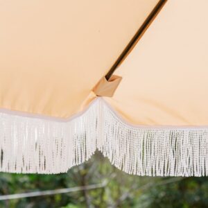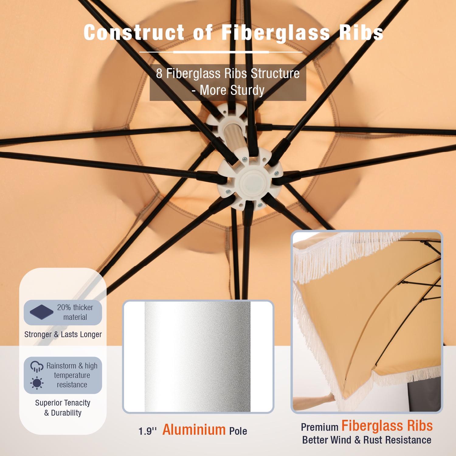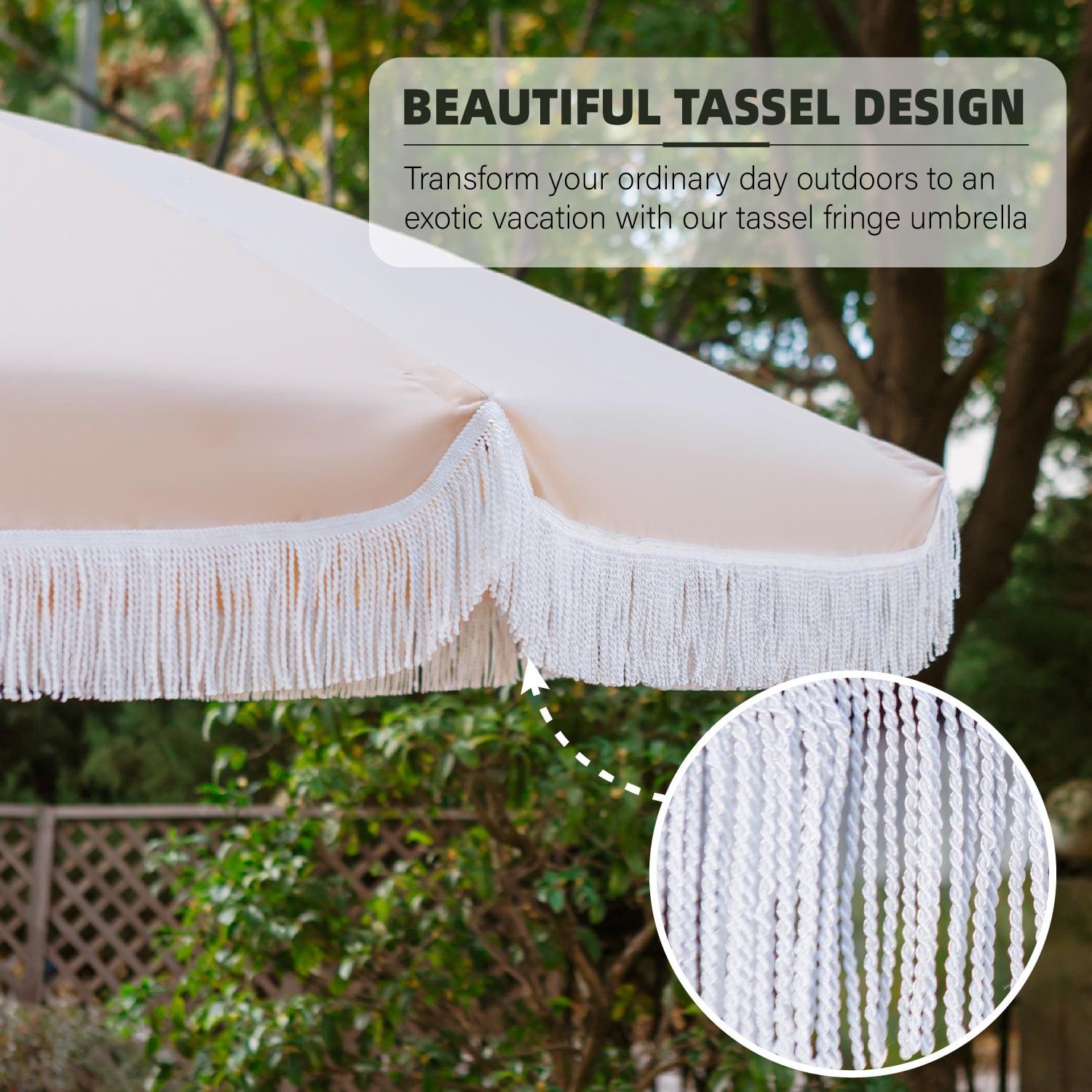 – Stylish Tassel Design Stylish Tassel designed patio umbrella will add a fresh look and unique appearance to your patio or outdoor space. Ideal for the backyard, lawn, and garden.