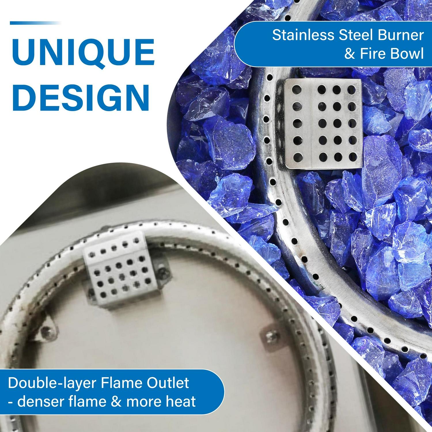 - The fire bowl and burner are made of superior stainless steel for a longer working life