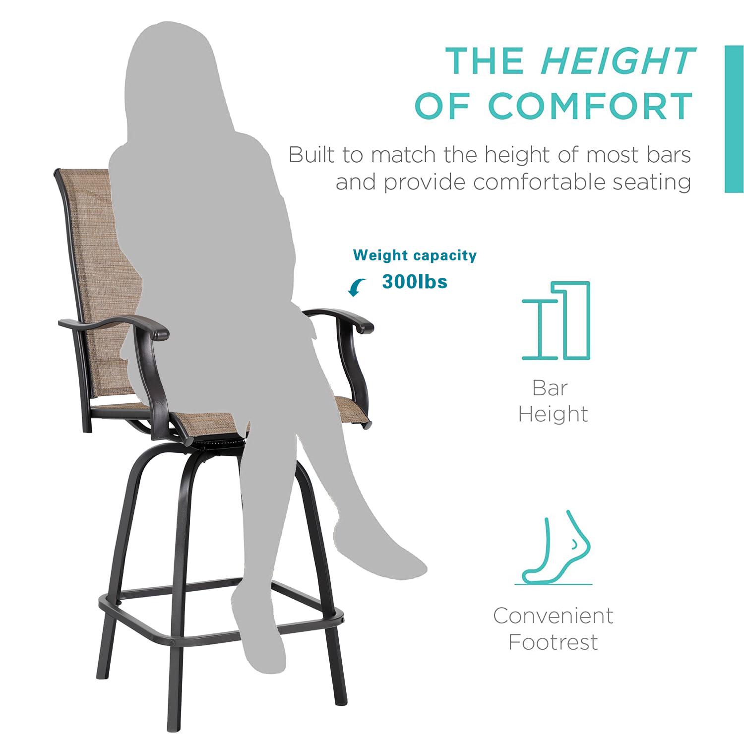 MF Studio outdoor swivel bar stools is ideal for your outdoor amusement such as garden, patio, porch or yard. You can enjoy your conversation time with your friends and have a cup of wine sitting on our bar stools. More good reviews prove our good quality compared with our sellers. All weather resistant metal frame and breathable fabric is suitable for outdoor, garden, backyard or poolside. Also you can search our MF Studio for more barstool and 3pc bar stool sets. Enjoy a cup of coffee or wine on our MF Studio bar stools with your friends.