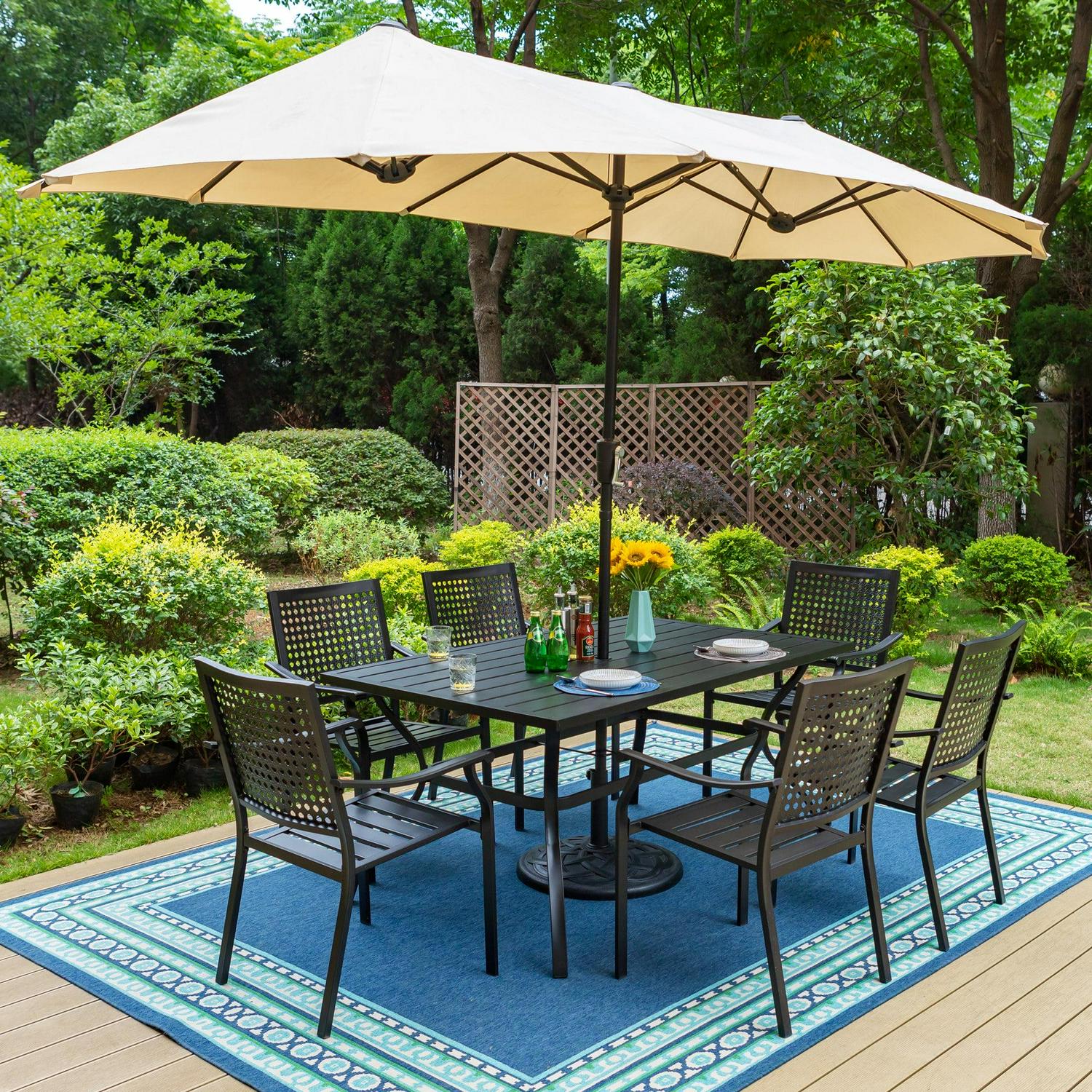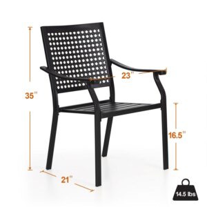 MF Studio Set of 2 Outdoor Dining Chairs, Powder-coated Steel Armchairs for Patio, Garden Porch, Deck, Yard, Balcony&Poolside, Black