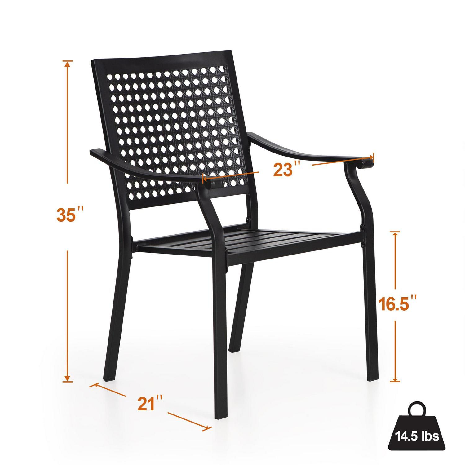– Premium Quality: The outdoor dining chair is made of high-quality steel frame with E-coating&powder coated finish which is all weather, UV&rust resistant, stable, durable and long-lasting.