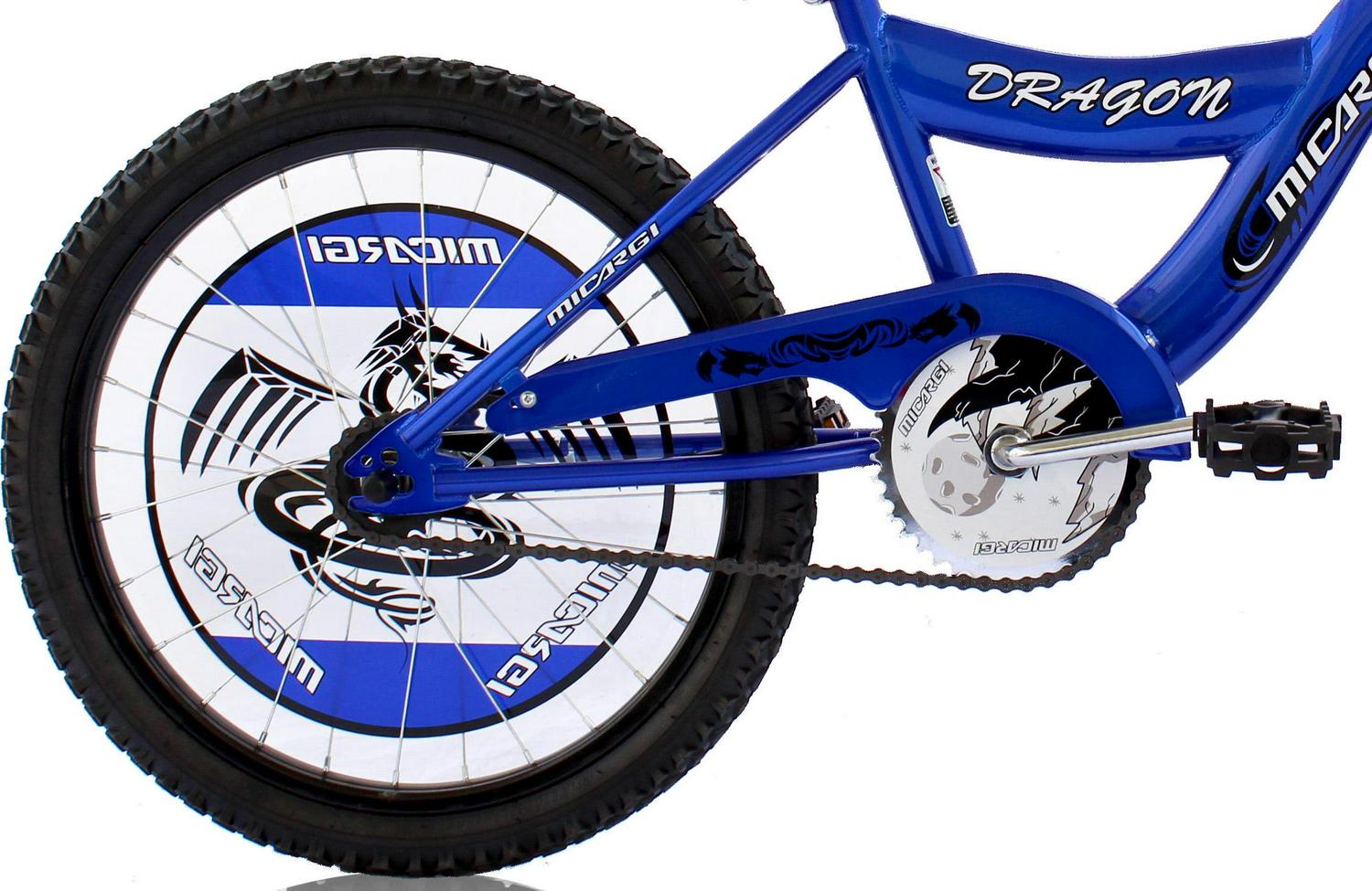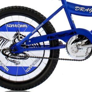 A stylish design for boys! The dragon is the perfect bike for transitioning from a trainer to a big kid’s bike. Its low top tube makes getting on and off easier and its special “S” frame provides the strength to service several generations of abuse by all the kids. Handlebars: steel CP, stem: steel CP, seat post: steel CP, hubs: steel CP and 28H chrome rims. Made from steel, Rims steel CP 20 in. L x 1.75 in. W, black tires 20 in. Dia.
