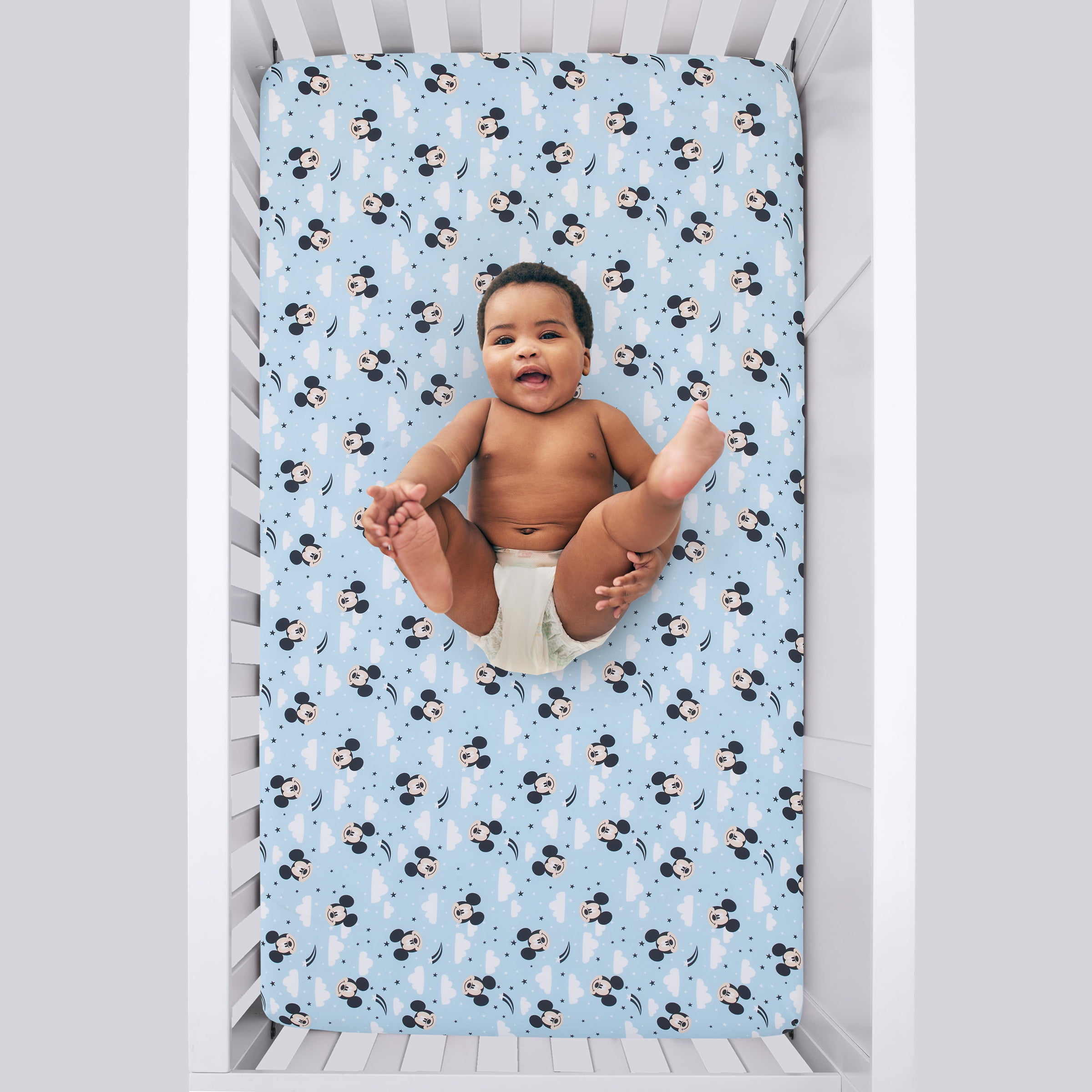 Mickey Mouse 3pc set includes comforter, fitted sheet and dust ruffle The adorable fitted crib sheet is fully elasticized for a safe and snug fit Includes everything you’ll need for a coordinated look Machine washable polyester microfiber fabrics for easy care
