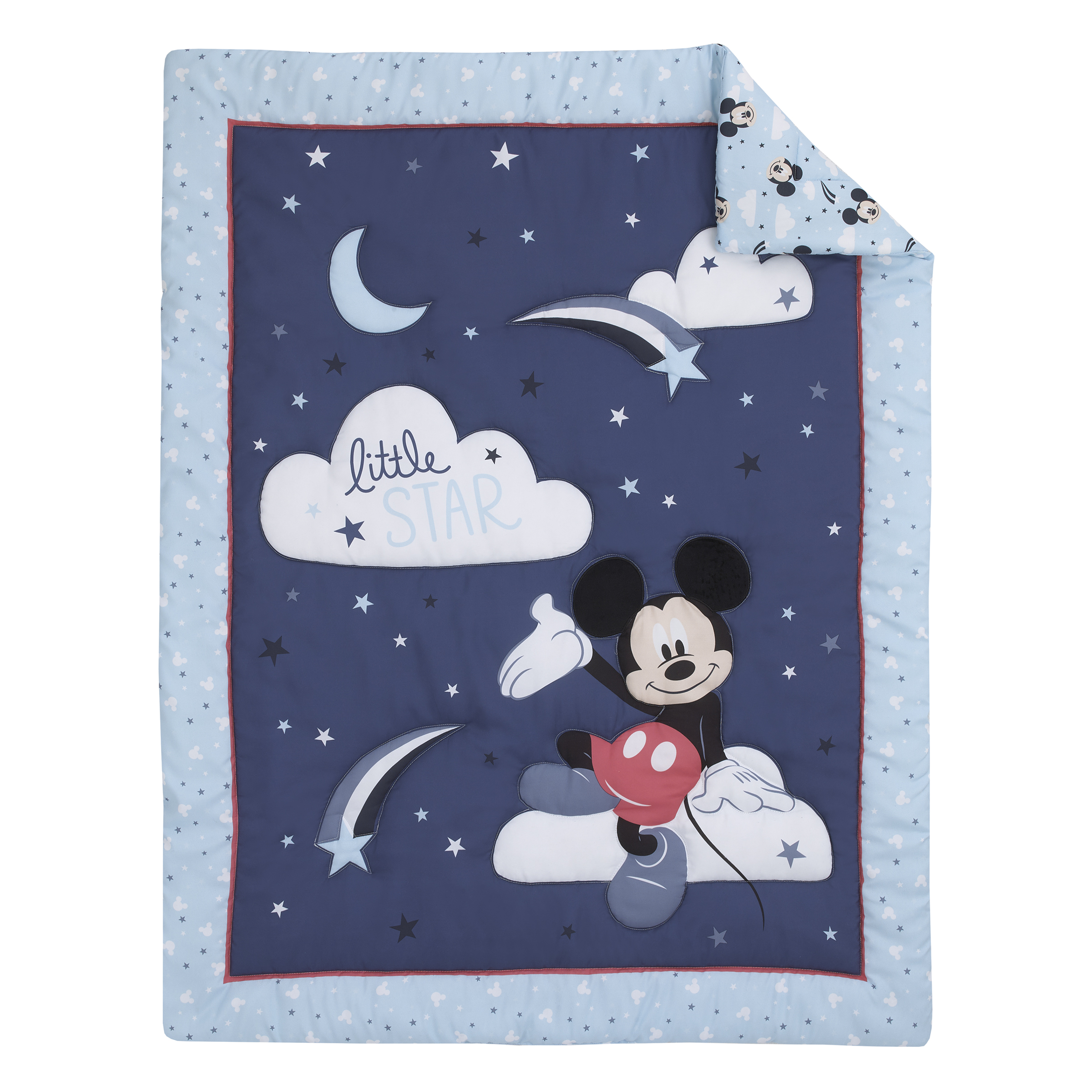 Mickey Mouse Little Star 3-Piece Crib Bedding Set, Blue – Comforter, Sheet, Dust Ruffle, Infant Boy, Polyester Fiber Fill