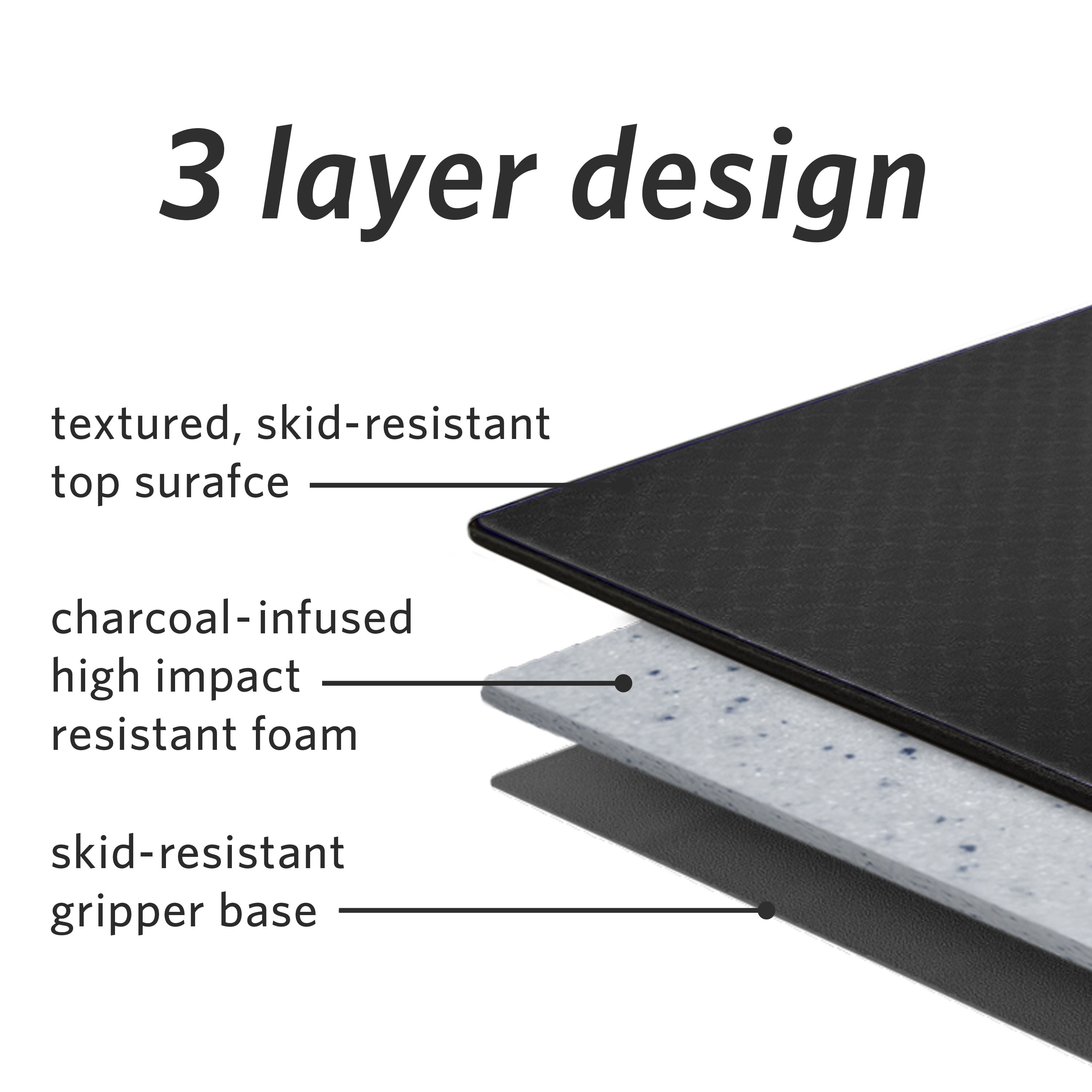 3-Layer Protective Comfort – The unique, 3-layered design of these exercise floor mats for home gym offers elevated safety and support. Each exercise pad has a textured, non-skid top surface, a high-impact-resistant foam, and a non-slip gripper base. This sleek workout mat for home ensures your optimal comfort and safety as you do any type of exercise. It won’t fray or tear easily, thanks to its unique, multilayer design. • Layer 1: Textured, skid-resistant top surface for good traction and grip. • Layer 2: High-impact-resistant foam to ease stress points. Offers customized comfort and rebounds as you move to absorb shock. • Layer 3: Skid-resistant gripper base to keep mat in place. No foul smell here! Our workout mats for home gym are infused with activated charcoal to keep them fresh and free from odor, mold, and mildew. The MICRODRY portable yoga mat is ideal when doing yoga, HIIT, pilates, or ab workouts. With an included yoga mat carrying strap, you can use it in the gym or when exercising at home.