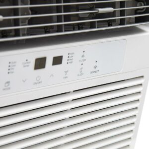 – Voice Control: The Midea 10,000 BTU 115V Smart Window AC with Comfort Sense Remote, White, MAW10S1WWT is wi-fi enabled and has voice control available with Google Assistant and Amazon Alexa