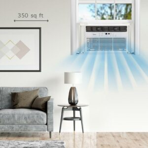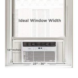 The Midea 10,000 BTU 115V Smart Window AC with Comfort Sense Remote, White, MAW10S1WWT will keep you feeling cool during those hot summer days! Midea’s new Comfort Sense remote adjusts the cooling strength based on the location of the remote! With 3 different cooling modes and 3 different fan speeds you have the option of personalized comfort. The Midea 10,000 BTU 115V Smart Window AC with Comfort Sense Remote, White, MAW10S1WWT is ideal for cooling medium-sized spaces up to 450 square feet. The Midea 10,000 BTU 115V Smart Window AC with Comfort Sense Remote and electronic controls lets you control the temperature and fan speed from across the room. The Midea 10,000 BTU 115V Smart Window AC with Comfort Sense Remote, White, MAW10S1WWT features a programmable 24-hour on-off timer with sleep mode for your convenience. The Midea 10,000 BTU 115V Smart Window AC with Comfort Sense Remote, White, MAW10S1WWT also comes with a ‘change filter’ indicator button that lights up when it is time to remove and clean it. The Midea 10,000 BTU 115V Smart Window AC with Comfort Sense Remote, White, MAW10S1WWT is designed to fit windows 23″-36″ wide, with a minimum height of 15.5″.