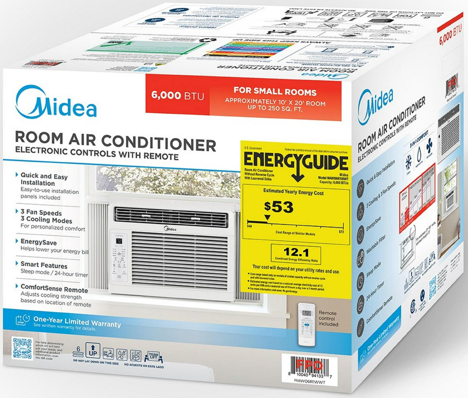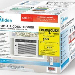 Stay comfortable all summer long with the Midea 6,000 BTU Window AC with Comfort Sense Control. Midea s new ComfortSense remote automatically adjusts the cooling strength based on the location of the remote! With three different cooling settings and three different fan speeds – there is no doubt you will find the setting that provides you with optimal comfort. You can select high, medium, or low – or use the energy saver button, designed to help you lower your energy bill. With the 24-hour timer you could set the timer, so your ac turns on an hour before you get home! The Midea 6,000 BTU Window AC with Comfort Sense device is ideal for cooling smaller spaces up to 250 square feet. The Midea 6,000 BTU Window AC with Comfort Sense also comes with a clean filter indicator button that lights up when it is time to remove and clean it. The Midea 6,000 BTU Window AC with Comfort Sense is designed to fit windows 23″-26″ wide, with and a minimum height of 13″.