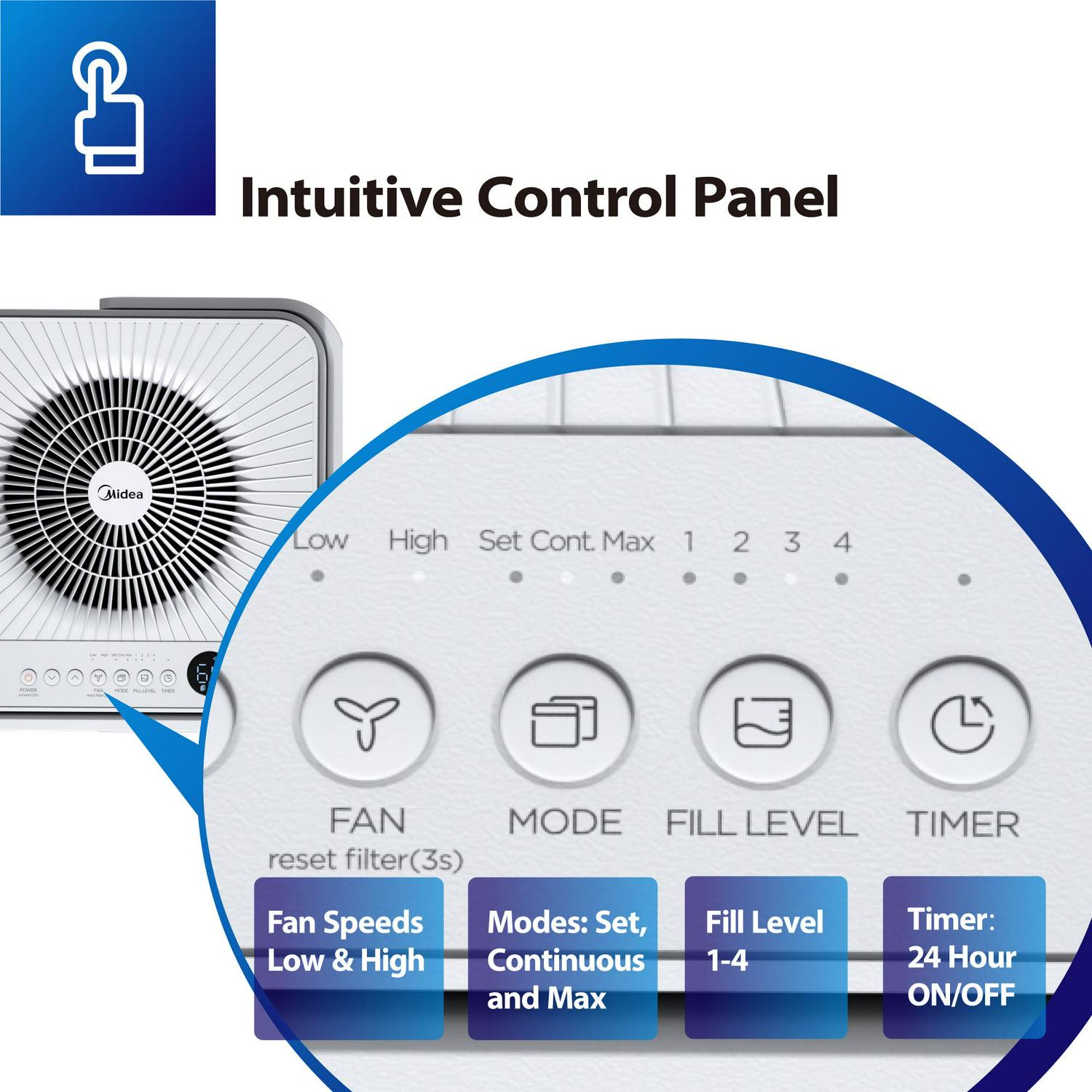 – Voice Control: Midea Cube 20-Pints Per Day Smart Dehumidifier for Moderately Damp Spaces, MAD20S1QWT is wi-fi enabled and has voice control available with Google Assistant and Amazon Alexa
