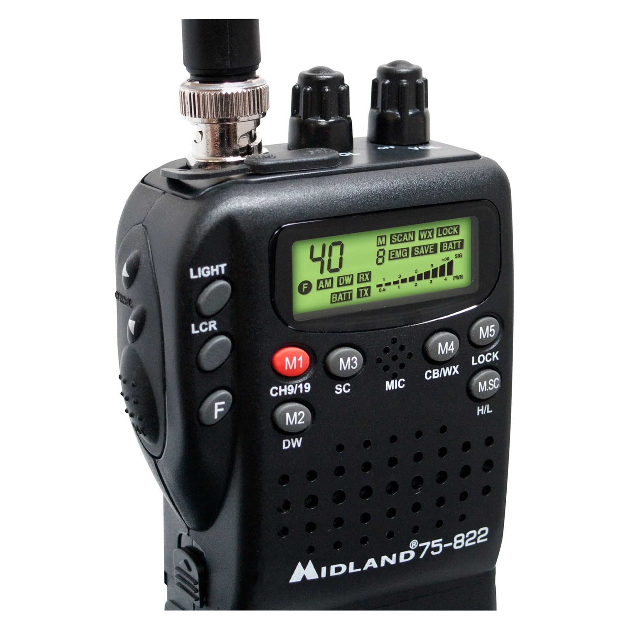 Midland 75-822 Handheld 40-Channel CB Radio with Weather/All-Hazard Monitor and Mobile Adapter: