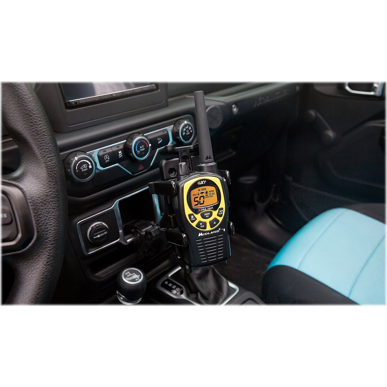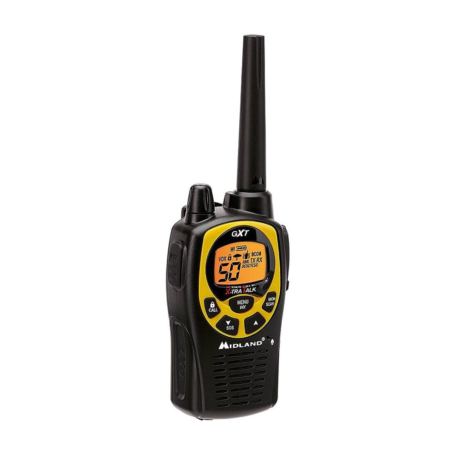 Midland GXT1030VP4 36-mile 50-channel gmrs two-way radio (black/yellow). Bold yellow faceplate. With 50 channels, this top-selling NOAA weather alert two-way radio gives you maximum output power with Xtreme Range Technology. JIS4 Waterproof – Protection in all directions against light rain or splashing water. 142 Privacy Codes – Gives you up to 3,124 channel options to help you block other conversations. 36 Mile Range- Longer range communication in open areas with little or no obstruction X-TRA TALK Power – Maximum allowed by law SOS Siren – Allows you to send out distress/locator signals in an emergency situation.