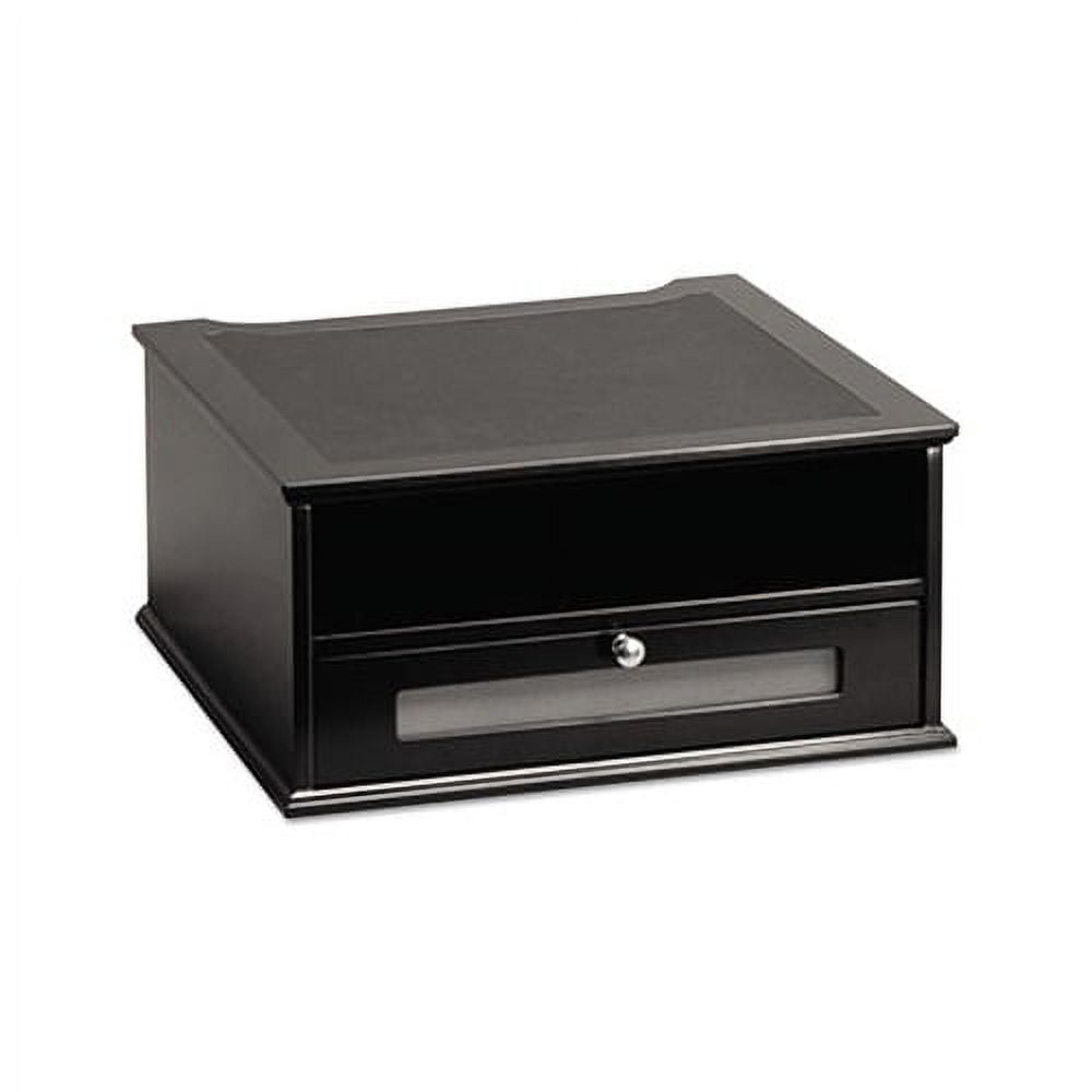 Product Type – Desktop Stands-Monitor Stand Type – Monitor Width – 13 Depth – 13 Maximum Height – 6.5 Colors – Black Materials – Faux Leather Capacity Weight – 50 lbs. For Use With – Computer Monitors Number Of Drawers – 1 Number Of Shelves – 1 Top Color – Black Sheet Size – 9 1/2 x 9 Pre-consumer Recycled Content Percent – 0% Post-consumer Recycled Content Percent – 0% Total Recycled Content Percent – 0% Assembly Code – N Prop 65 Indicator – N Green Indicator – N EPACPGCompliant Code – N