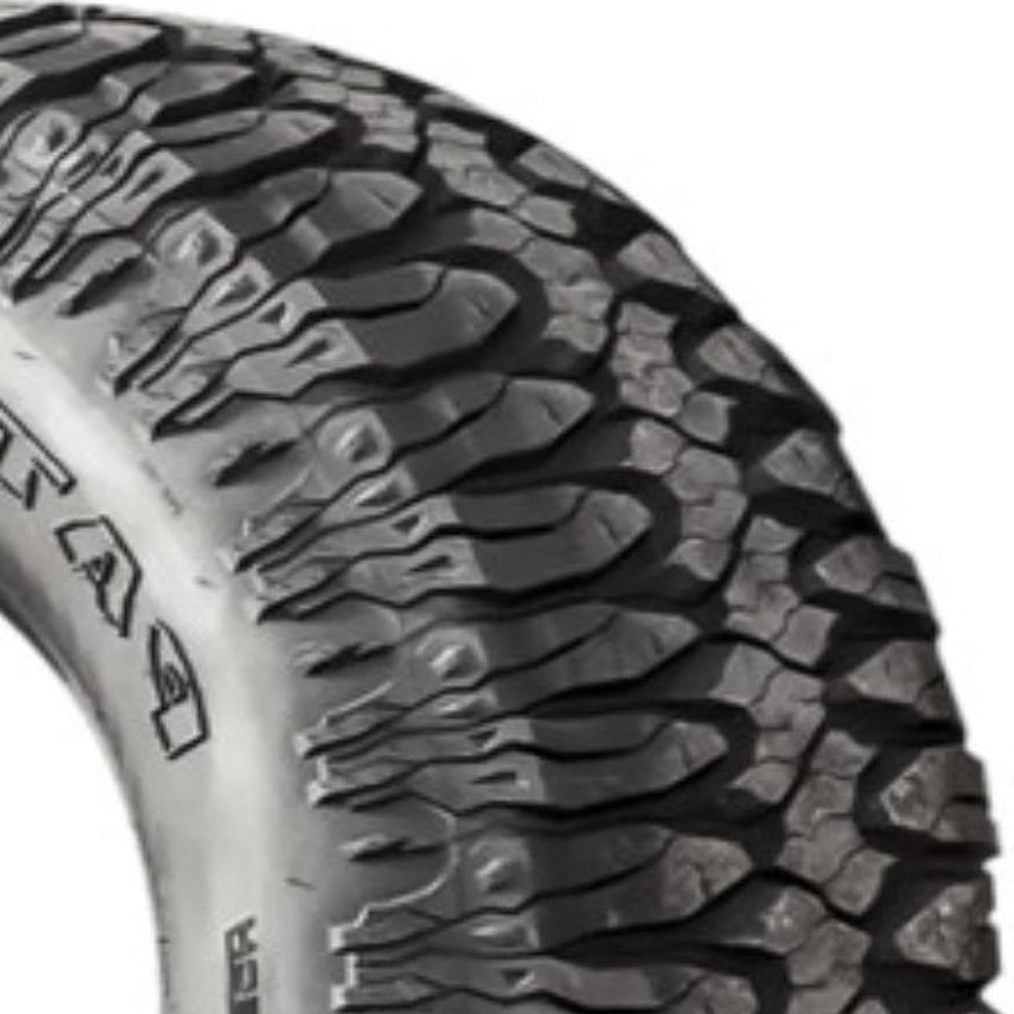 Designed for use on light trucks and SUVs that frequently drive off-road Aggressive tread pattern with large voids provides traction even on the most challenging terrain Integrated cross-directional siping ensures a stable footprint reducing the risk of chunking MILETECH 3-Ply sidewalls give enhanced rigidity for superior sidewall durability Silica-enriched tread compound adds cut and chip resistance Size: LT275/65R18 Load Range: E Product May Vary From Picture Wheel/Rim Not Included