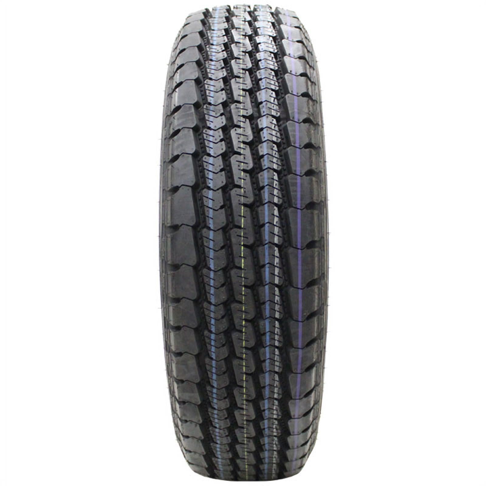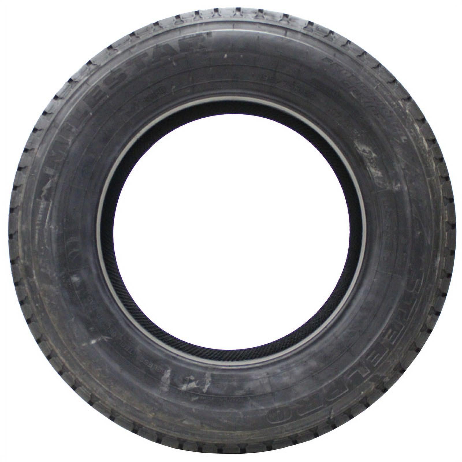 3-ply sidewall provides added strength and impact protection Stone ejectors are integrated to protect against stone retention and drilling for a longer tread life Durable ribbed shoulder design provides greater stability and reduces irregular wear Deep, zigzag grooves promote rapid water evacuation and improves traction and stability, even under heavy loads Backed by a 40,000 mile limited manufacturer tread life warranty Size: LT9.50R16.5 Load Range: E Product May Vary From Picture Wheel/Rim Not Included