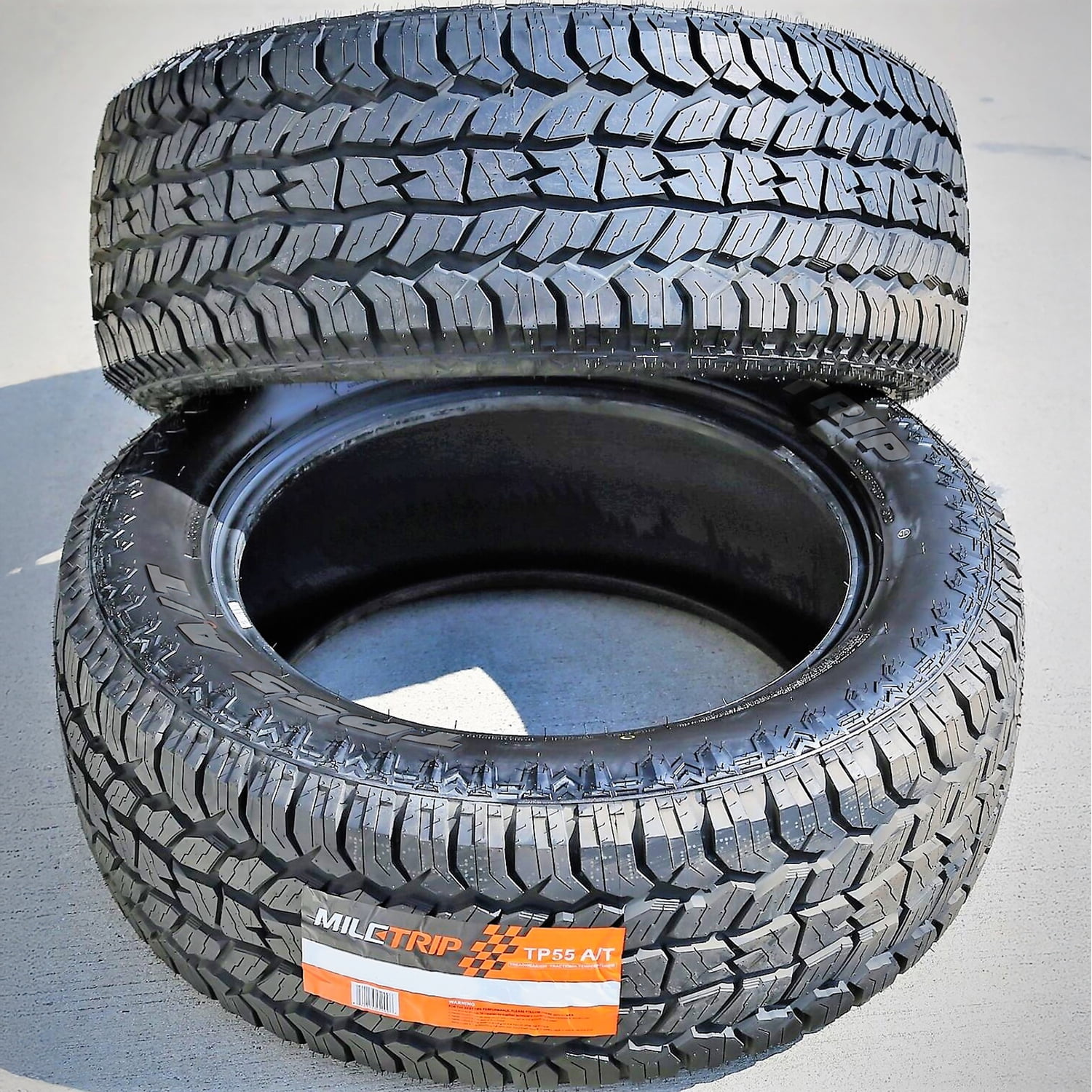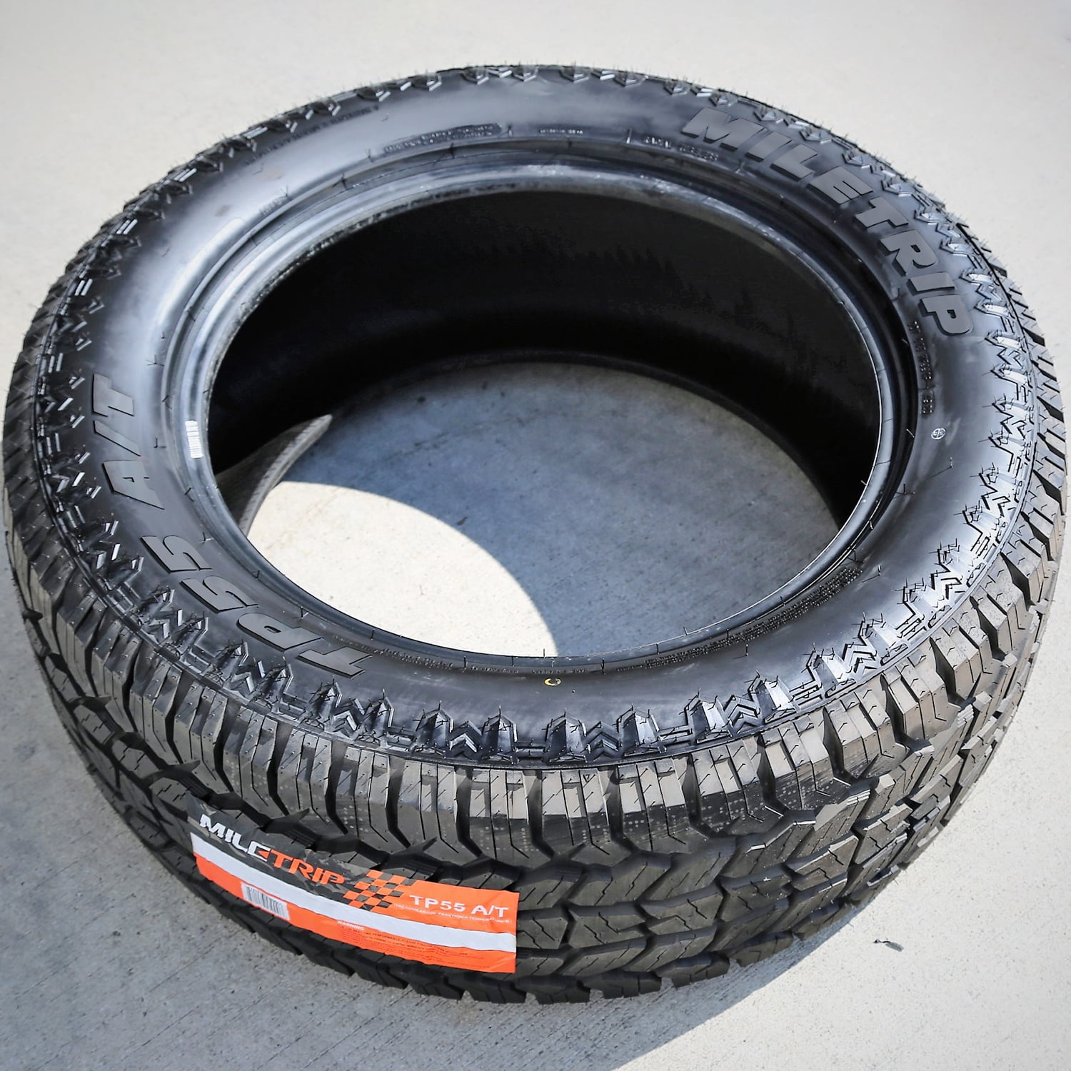Miletrip TP55 A/T OVERVIEW The Miletrip TP55 A/T is an all terrain, all season tire made for SUVs and light trucks. The tire offers excellent all terrain traction. The staggered block placement, with the siping detail, provides additional biting edges that optimize on- and off-road grip. These tread elements enable the tire’s grip on various soft, loose, and uneven terrain conditions. This boosts its on-road comfort and off-road, deep mud traction. Its aggressive tread also keeps the footprint clean at all times, eliminating mud, snow, and rocks stuck between the tread elements. Mud and snow do not block the surface contact, while stone retention is effectively avoided. The flat footprint improves the tire’s controllability. The stable footprint maintains the surface contact at all times, upgrading steering responsiveness and driving stability. As a result, this model ensures exceptional steering response time and accuracy to the driver’s commands. It also effectively secures the structure against driving pressure, significantly boosting the tire’s overall performance. This guarantees the driver’s control over the vehicle at all times. The Miletrip TP55 A/T increases its year-round performance. The aggressive tread design and all season compound enable the tire’s grip on the road surface. In other words, provides excellent dry, wet, and winter weather grip. The sipes create additional biting edges, while the compound keeps the rubber flexible throughout the year. Circumferential grooves are tasked with combating hydroplaning during the tire’s on-road drive. These grooves channel water and slush from the footprint, offering a secure performance. Not all tire sizes are suitable for all vehicle types. Please refer to the item specifications for accurate information about vehicle type fitment for this particular size. Manufacturers recommend changing tires every 10 years. As long as tires are properly stored before they are sold, the year of their manufacture will not shorten their service life.