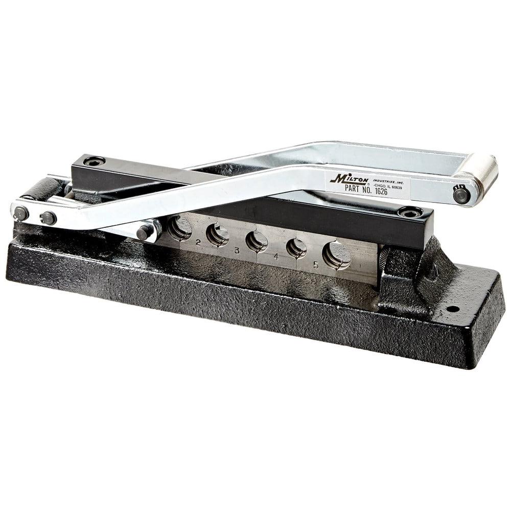 Satisfy the growing demand for high quality tools that you need with the best-selling tools from Milton Industries!. Makes professional quality hose assemblies fast and easy. Crimps ferrules on hose ranging from 1/4 in. single braid to 3/8 in. two braid hose. Constructed of high strength ductile iron casting, and has 5 hardened steel ribbed dies for instant use. Can be bench mounted or used as a portable tool at the jobsite.