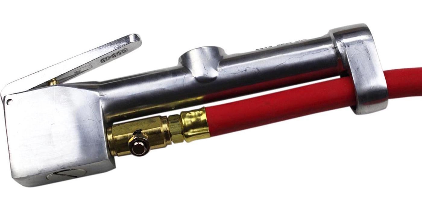 Milton (553) Heavy-duty Truck Tire Inflator Gauge with 5 Air HosenMilton s dual head lock-on chuck inflator gauge is ideal for servicing truck tires and heavy-duty inflation applications. Meeting OSHA standard 1910.77. This inflator gauge is equipped with a 5′ hose assembly, a 6