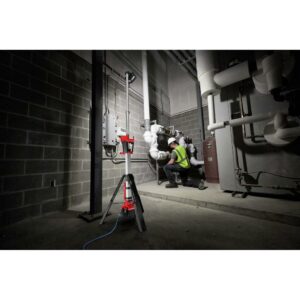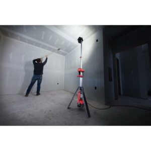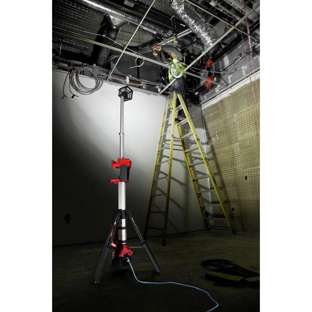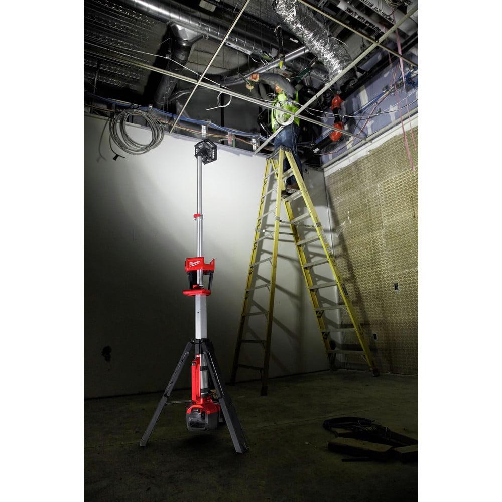 25% More Light, All Day Operation. The M18 ROCKET DUAL POWER TOWER LIGHT is providing more light on the job with 2500 lumens of TRUEVIEW Hight Definition Output. All while having the capability being Dual Power, powered by M18 or extension cord. The light head can be extended from 4-7 ft. to light overhead work or minimize shadows when casting light downward. Capable of filling large areas with light, it provides 2,500 lumens in its high mode, 1,100 in medium and 700 in low, and it can run for up to 4, 8, or 12 hours with an M18 REDLITHIUM XC 5.0 Battery Pack. It uses TRUEVIEW High Definition Output providing neutral white color and a high color rendering index paired with a Milwaukee designed reflector to produce an even beam pattern. Its reinforced legs are impact resistant, and its low center of gravity provides a stable base. The light head is protected by an impact-resistant lens and bezel, and it nests into a protective shroud for secure transport and storage. Its LEDs never need to be replaced, and are backed by a limited lifetime warranty. The combination of these technologies offers professionals the highest quality LED lighting solution, on or off the jobsite.