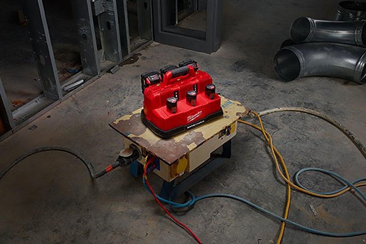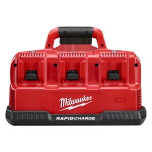 The M18 & M12 Rapid Charge Station is the fastest charging solution in the industry. With the ability to Charge 6 Packs 4X Faster, the station charges three batteries simultaneously while charging each pack up to 40% faster. The charger accepts up to (3) M18 & (3) M12 battery packs, reducing the amount of time spent changing out batteries and increasing productivity on the jobsite. Featuring REDLINK Intelligence, it communicates directly with the battery to monitor cell voltage, temperature, and charge status to optimize the performance and extend the life of the pack. The station has integrated hang holes for vertical mounting, a pass through plug to conserve outlet space, and a convenient carry handle to transport packs on and off the jobsite.