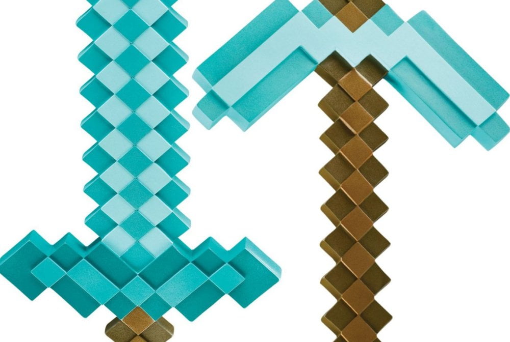 Minecraft Imagine yourself battling monsters and digging for resources wielding this Costume Accessory Set. Set includes 1 sword and 1 pickaxe. Made of lightweight hollow sturdy plastic. Features the pixel styling that is the hallmark of the Minecraft video game. Colored in shades of aqua (green / blue), and brown. These essential and distinctive gaming tools are fun for fans and great for gamers. For kids, teens, adults ages 4 years and older. Costume toy memorabilia merch. Must-have for fans, collectors, costumes, cosplay, party, decoration, gift.