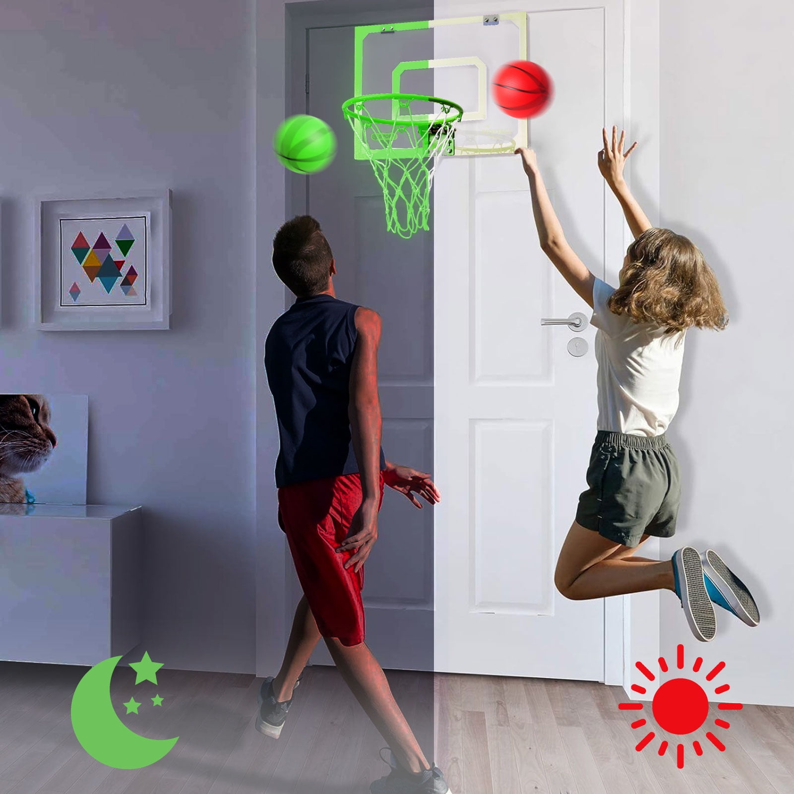 Mini Basketball Hoop Over the Door Glow in the Dark Indoor Basketball Hoop Backboard Christmas Birthday Gift Toy for Kids Boys Girls