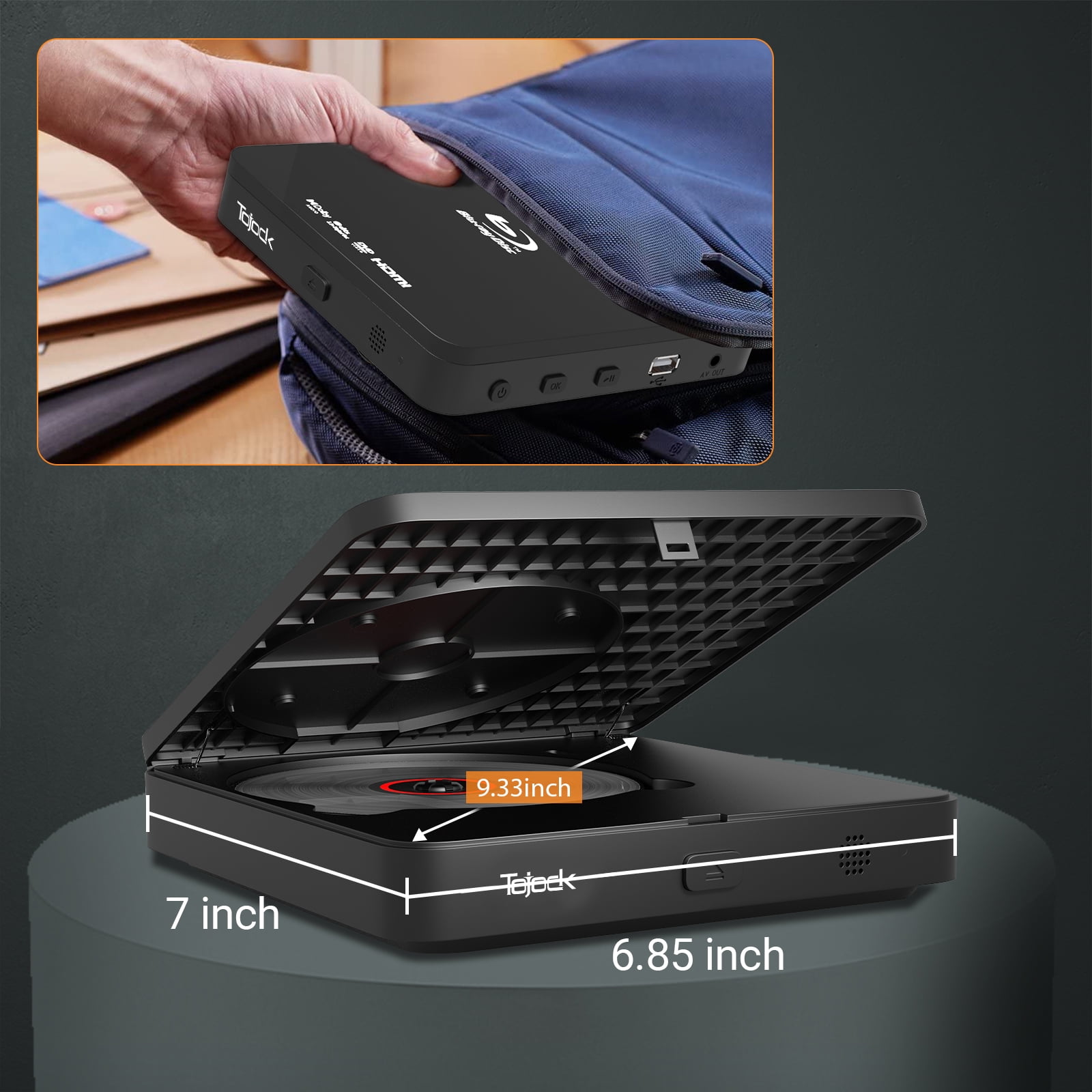 【Full HD 1080p Blu-ray Disc playback】Enjoy Blu-ray Disc movies in Full HD 1080p resolution and upscale the visual quality of DVDs to near HD quality. For depth and image clarity far exceeding that of Regular DVD. 【Support HDMI and AV ports】Play digital files directly from a USB flash drive or HDD (Max 128GB, USB 2.0). The USB supports MP3/WMA/WAV, JPEG, and MPEG2/AVI file formats. This high-quality region-free Blu-ray DVD player elevates your home entertainment experience to a new level. You can also connect your TV using HDMI and AV cables, allowing you to enjoy a clean and minimalist living space while fulfilling your immersive movie needs. 【Blu-ray Disc】This small blu ray player supports Blu-ray region 1 discs. The supported formats of the disc are as follows: BD: Blu-ray Disc ; BD-R: Blu-ray Disc – Recordable ; BD-RE: Blu-ray Disc Re-Erasable ;DVD-R/RW: DVD – Recordable ; DVD+R/RW: DVD + Recordable ; DVD-Video: Digital Video Disk-Video ; VCD: Video Compact Disc ;CD: Compact disc CD; CD-R/RW: DVD Recordable / Read Write.g DVDs, so you don’t have to replace the old DVD collection. 【Super Mini Compact Size】Compact and simple size with a dimension of 7×6.85×1.1 Inches.The mini blu ray dvd player HDMI can be hung behind the headrest of the car for easy viewing by children. 【Surround Dolby DTS Audio】This mini Portable dvd blu ray player is designed for 1920×1080 high-resolution audio reproduction and supports multichannel surround sounds such as Blu ray Dolby Digital, Dolby Digital+, Dolby TrueHD, and DTS. Providing your home theater with studio master sound quality.