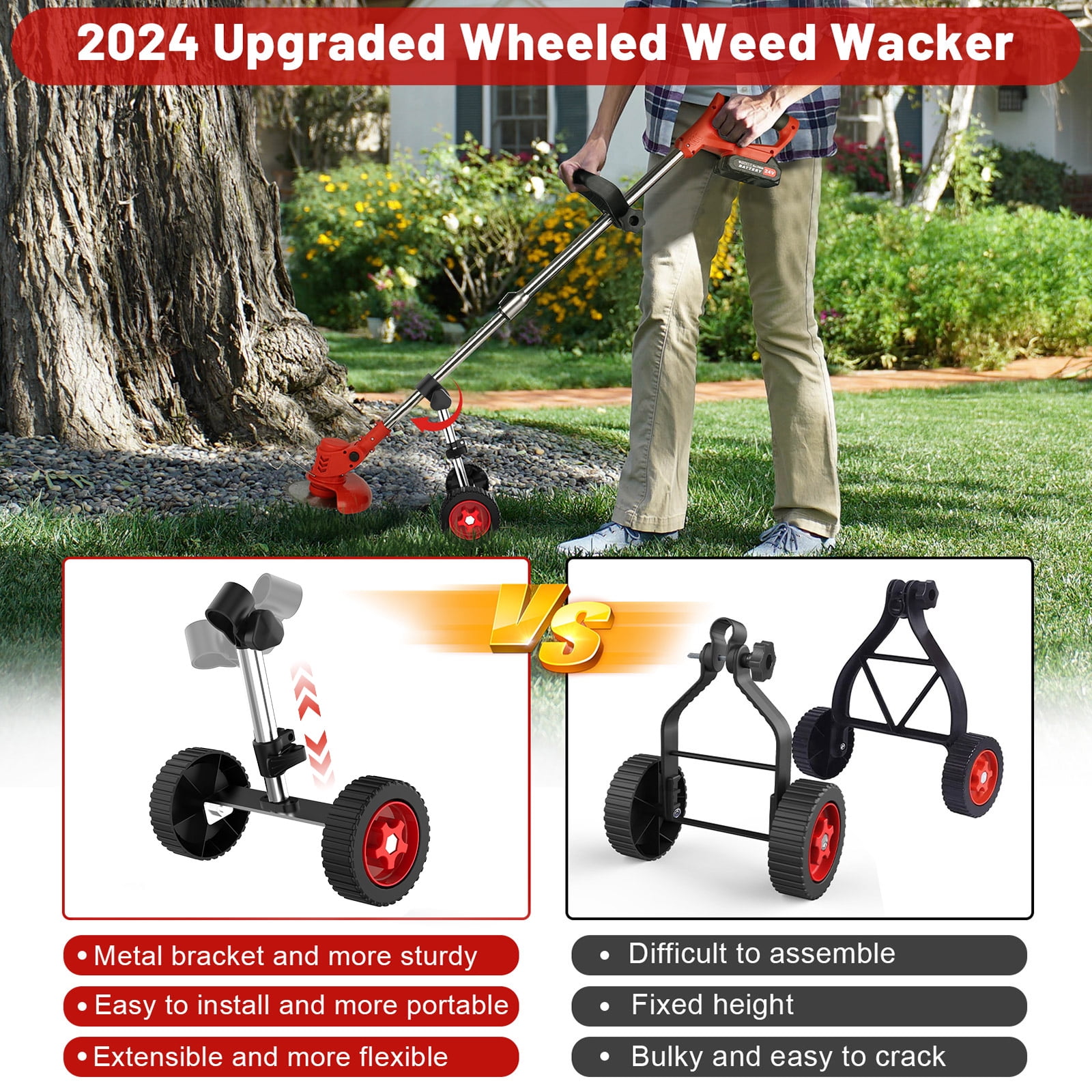 Weed Eaters Cordless with 2025 Upgraded Metal Wheels, Tanbaby 3-in-1 Battery Powered Grass Trimmer & String Trimmer/Edger Kit for Lawn Garden Pruning/Trimming