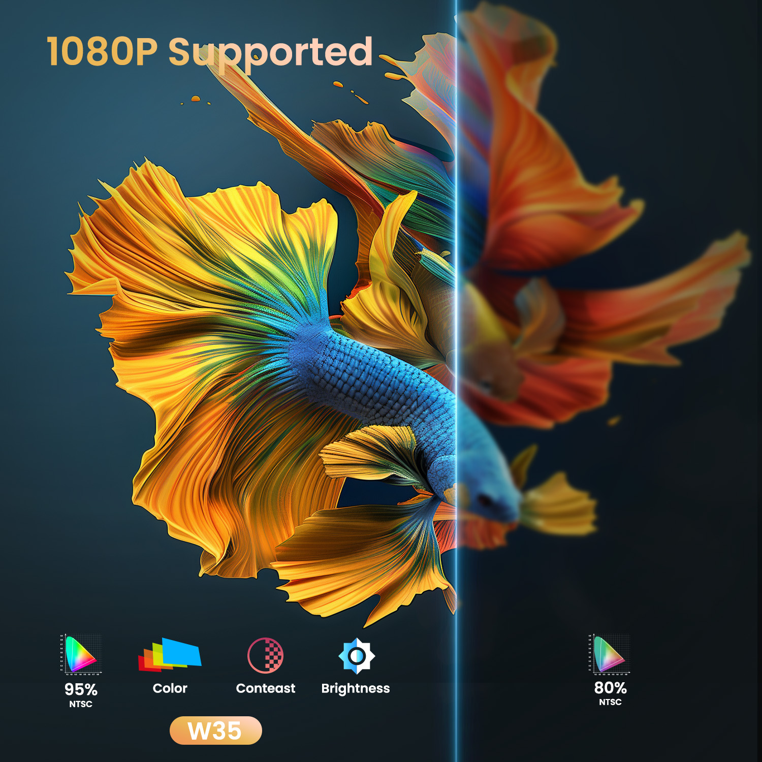Specifications: Display Technology: LCD Resolution: 1920*1080 Keystone Angle: 15° Contrast: 20000: 1 Rotation Angle: 210° Supported Resolution: 4090*2160P(4k)/1920*1080P/1280*720P/800*480P Features: All-round Flexibility: 210-degree Rotating Barrel Projector Experience unparalleled versatility with this 210-degree rotating barrel projector. Its innovative design allows seamless adjustments in multiple angles, whether projecting onto walls, ceilings, or any other surface. With its impressive 210- degree rotation capability, you can effortlessly achieve the perfect viewing angle without constantly repositioning the projector. Ideal for home theaters, conference rooms, or any setting, this projector ensures a crisp, clear image tailored to your needs, providing both convenience and high performance. Advanced Connectivity: WiFi 6 & Bluetooth 5.3 Portable Projector Upgrade your viewing experience with this portable projector featuring cutting-edge WiFi 6 and Bluetooth 5.3 technology. WiFi 6 ensures ultra-fast, stable internet connections for smooth streaming and minimal lag, while Bluetooth 5.3 provides enhanced audio connectivity with greater range and stability. Whether streaming your favorite shows or connecting to wireless speakers, this projector delivers superior performance and seamless integration. Perfect for home theaters and multimedia setups, it offers modern connectivity for an enhanced and hassle-free entertainment experience. All-in-One Entertainment: Android 11 & 7,000+ Apps Mini Projector Elevate your viewing experience with this Mini projector featuring built-in Android 11.0, which supports over 7,000 apps for endless entertainment options—stream movies, TV shows, and more directly from your projector without needing extra devices. With the latest Android system, you get access to a vast array of applications, ensuring you always have your favorite content at your fingertips. Ideal for home theaters and media rooms, this projector combines smart functionality with high performance for a truly immersive experience. Effortless Setup: Bluetooth Projector with Electric Focus & Auto Keystone Correction Experience the ultimate convenience with this portable barrel projector, featuring electric focus and automatic keystone correction. Effortlessly achieve a sharp, clear image and perfect alignment without manual adjustments. Whether you’re setting up for a movie night or a presentation, these smart features ensure a hassle-free setup, allowing you to focus on enjoying your content. Ideal for both home and on-the-go use, this projector combines advanced technology with portability for a seamless viewing experience. Compact & Portable: Mini Barrel Projector for Easy Transport Discover the ultimate in portability with this mini barrel projector, designed to be compact and easy to carry. Its sleek, lightweight build makes it perfect for on-the-go entertainment or presentations, whether you’re traveling or simply moving between rooms. Despite its small size, it delivers impressive performance, ensuring you can enjoy high-quality projections anytime, anywhere. Ideal for both home use and mobile scenarios, this projector offers convenience without compromising on functionality. Packages Included: 1 * W35 Projector 1 * Remote Control 1 * HMDI Cable 1 * Power Cord 1 * User Manual