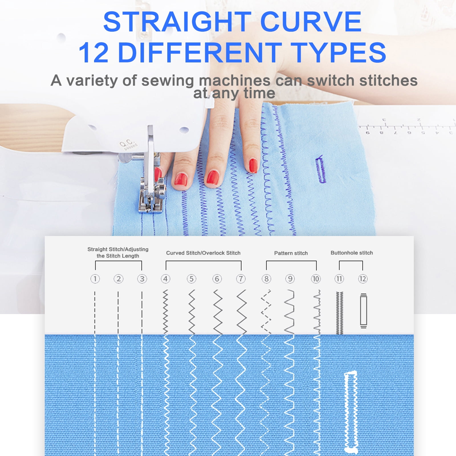 🧵【Design】 :The equipment adopts metal hook tip design, which is durable and does not jumper.The fast and slow gear design of the product makes it easy for novices to operate, and complex sewing is easy.External speed control pedal design, gravity sensor design, the heavier the faster the speed.Simple sewing function. 🧵【Lightweight & Easy to Store】: Size: 13.11″x5.7″x9.6″, lightweight: 6.4 pounds. Small in size, easy to store, designed with a handle. The body has a scale, the double-line sewing is firmer, and the adjustment of the stitch length requires only a toggle button, which is easy to operate and is very suitable for beginners. 🧵【Multi-Function】 :The newly upgraded mini sewing machine has a variety of intimate and practical functions: tangential cutter, LED lighting, storage drawer, winding function, upper thread elastic adjustment, double switch control; you can easily replace the presser foot. 🧵【Safety and Energy Saving】: Horizontal rotary shuttle structure design makes the equipment operation quieter, reduce the difficulty of bottom thread installation.Made of high-quality environmentally friendly materials, using ultra-durable motor technology, the machine has strong power, long service life, etc. 🧵【Practical & Gift】: Portable sewing machine supports two different speeds, with 12 built-in stitches to meet your DIY sewing needs: home decoration, crafts, tablecloths, prom dresses, pet clothes, etc., to make your life more colorful . Exquisitely small appearance makes it an ideal gift for who give it to others around the birthday or festivals.(1616-005183-07E0A)