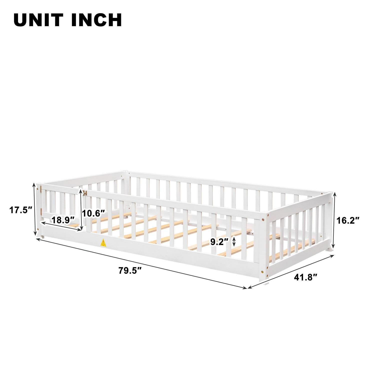 – VERSATILE FLOOR BED: Featuring fence and door, this unique bed frame creates a fun and adorable space that not only serves as a comfortable sleeping area but also double as a space for your kids to play and have fun.