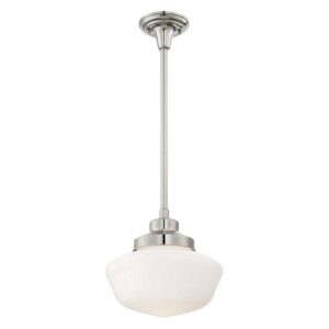 School is in session and the lesson today is style! Get ahead of the class with this poised pendant light from Minka Lavery. Featuring a classic schoolhouse glass shade in opal and a brushed bronze finish on its canopy, stem and shade holder, this pendant is perfect for homes with traditional, antique and vintage style furnishings. Its hanging height adjusts up to 58.5″ and it can be hung from sloped ceilings, so you can use it practically anywhere to add helpful luminance and quiet grace. At on
