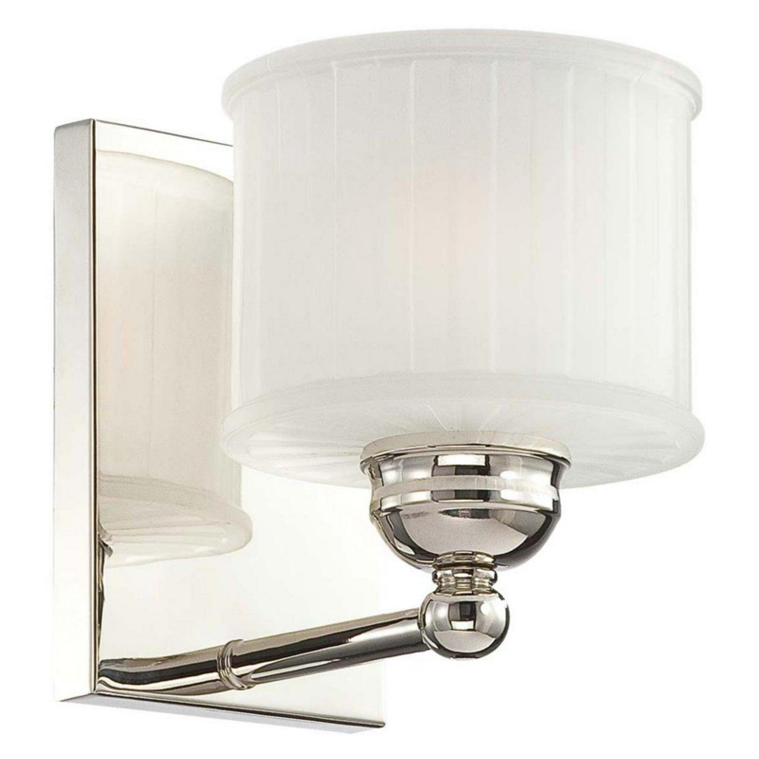 Minka Lavery-6731-1-613-Collection: 1730 Series, Material: Glass, Finish Color: Polished Nickel, Width: 5.5″, Height: 7.5″, Depth: 7.75″, Backplate Width: 0.63″, Backplate Length: 4.38″, Lamping Type: Incandescent, Number Of Bulbs: 1, Wattage: 100 Watts, Dimmable: Yes, Moisture Rating: Dry Rated, Desc: Mounting Direction: Reversible / Shade Included: TRUE. ,-1730 Series – 1 Light Transitional Bath Vanity in Transitional Style – 7.5 inches tall by 5.5 inches wide-Polished Nickel Finish