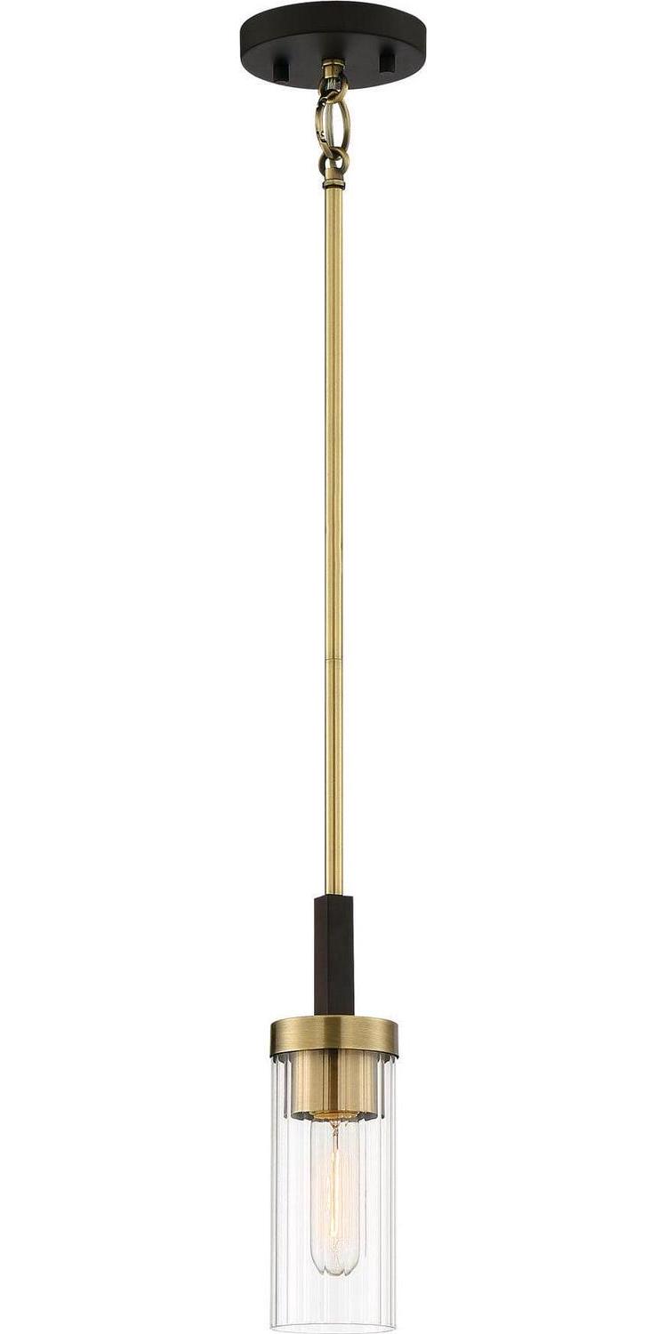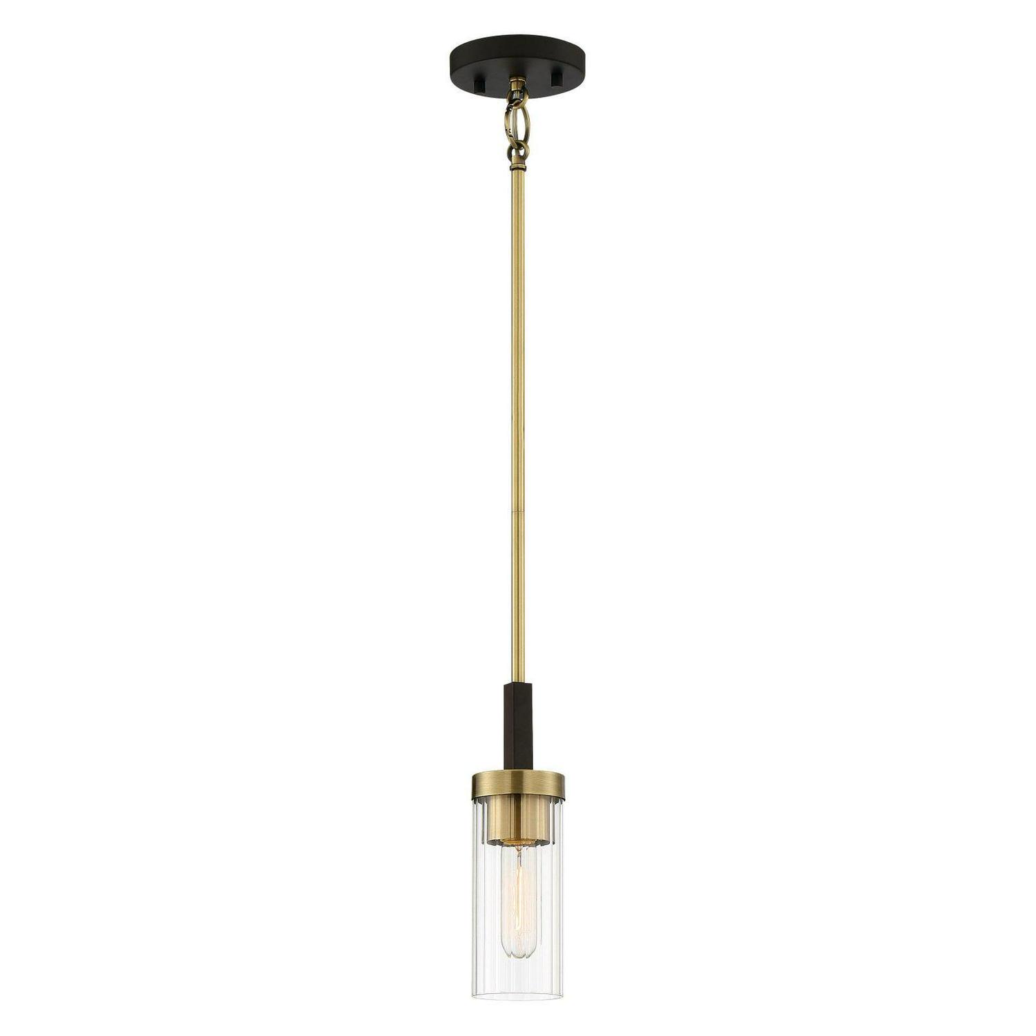 The Minka Lavery 3040-560 Mini Pendant Light is great by itself, but we think you’ll enjoy what it looks like in a group. At the end of a long, slender down-rod is a mid-century inspired fixture with a shade of clear ribbed glass. The steel body is finished in shades of aged bronze with brushed brass highlights.