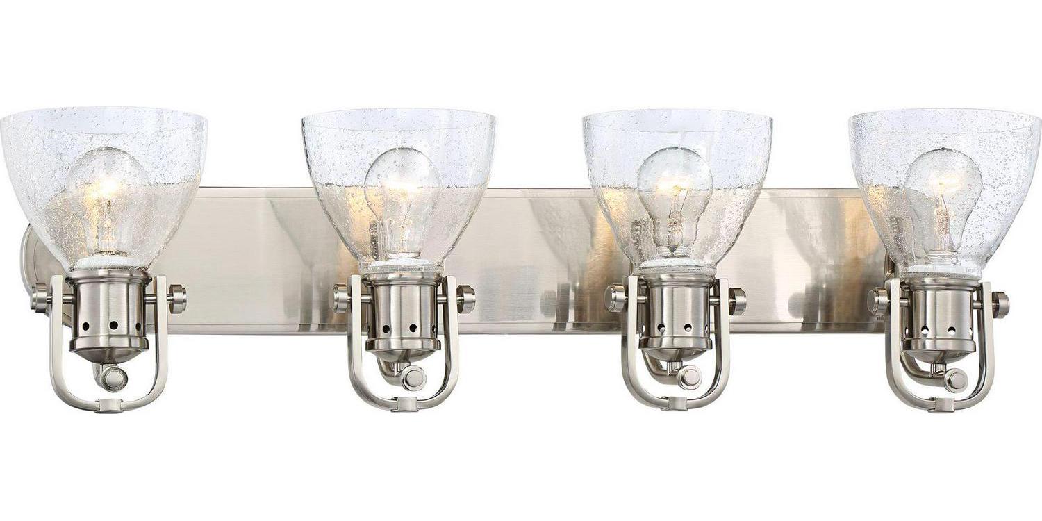 – Bath Art transitional industrial four-light bath light from Minka Lavery.