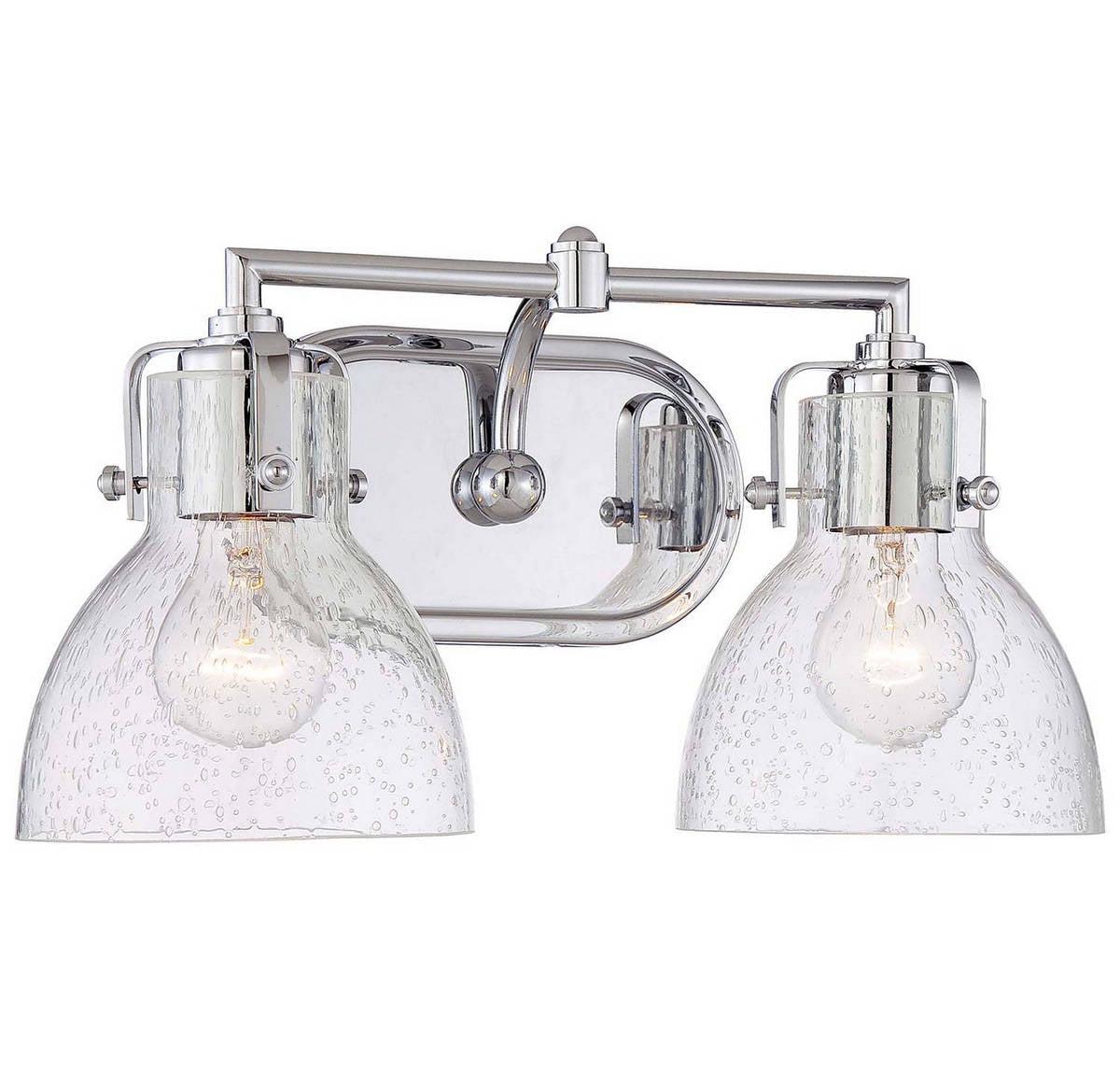 Minka Lavery-5722-77-Material: Glass, Finish Color: Chrome, Width: 15.5″, Height: 8.25″, Depth: 7″, Backplate Width: 7.88″, Backplate Length: 4.5″, Lamping Type: Incandescent, Number Of Bulbs: 2, Wattage: 100 Watts, Dimmable: Yes, Moisture Rating: Dry Rated, Desc: ,-2 Light Transitional Bath Vanity in Transitional Style – 8.25 inches tall by 15.5 inches wide