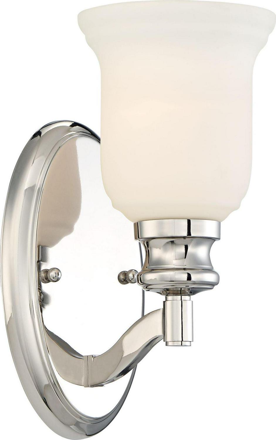 This bathroom vanity light from Minka Lavery is a part of the Audrey’S Point collection and comes in a polished nickel finish. It measures 13″ long x 5″ wide x 11″ high. It uses one standard bulb up to 100 watts. This light would look best in a bathroom. Damp Rated. Can be used in humid environments like bathrooms or covered outdoor areas.