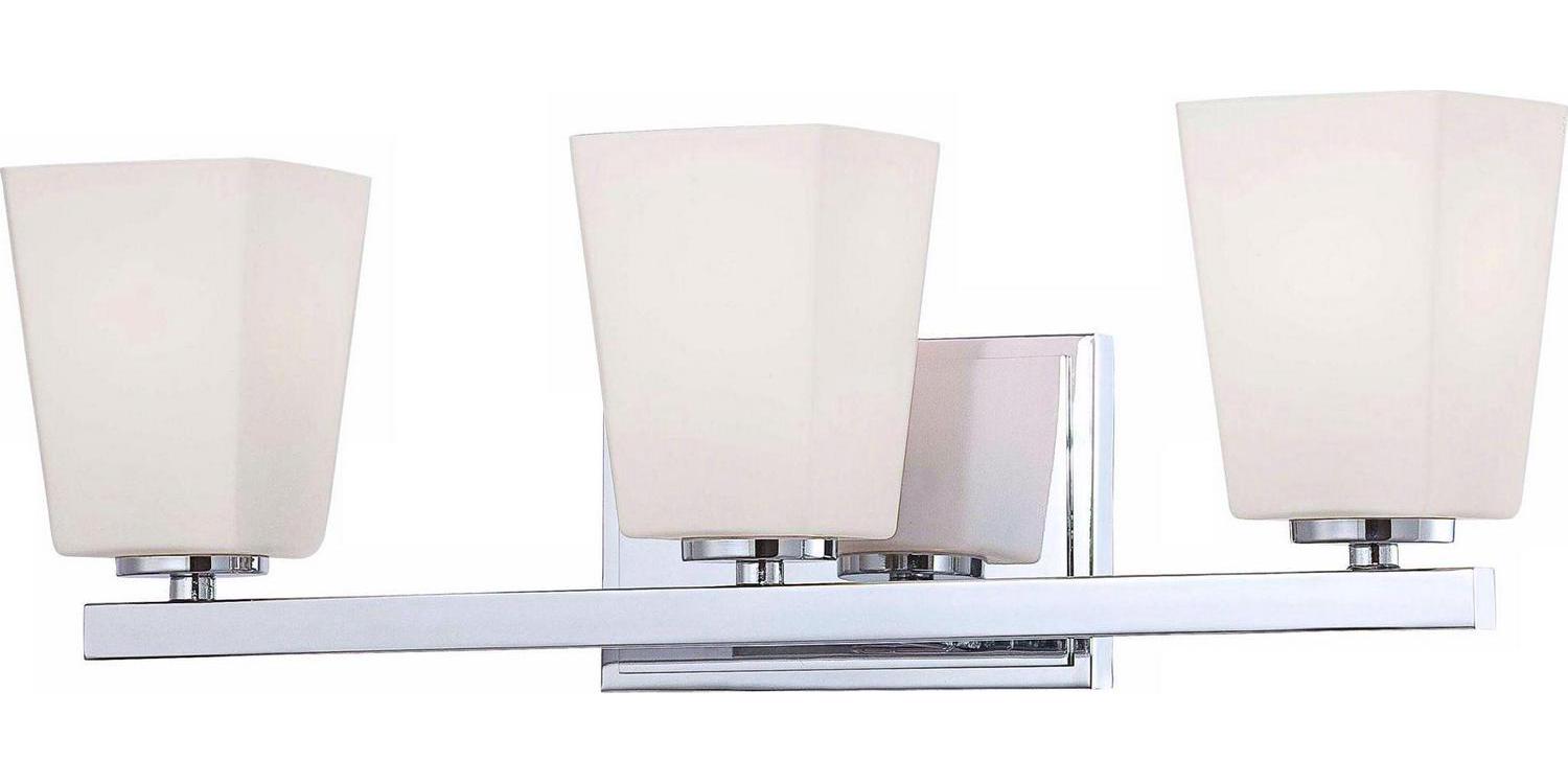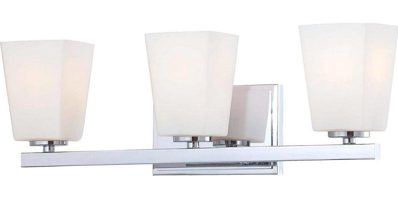 Minka Lavery-6543-77-Collection: City Square, Material: Glass, Finish Color: Chrome, Width: 20.75″, Height: 7″, Depth: 5″, Backplate Width: 6″, Backplate Length: 4.5″, Lamping Type: Incandescent, Number Of Bulbs: 3, Wattage: 100 Watts, Dimmable: Yes, Moisture Rating: Dry Rated, Desc: Mounting Direction: Reversible / Shade Included: TRUE. ,-City Square – 3 Light Transitional Bath Vanity in Transitional Style – 7 inches tall by 20.75 inches wide