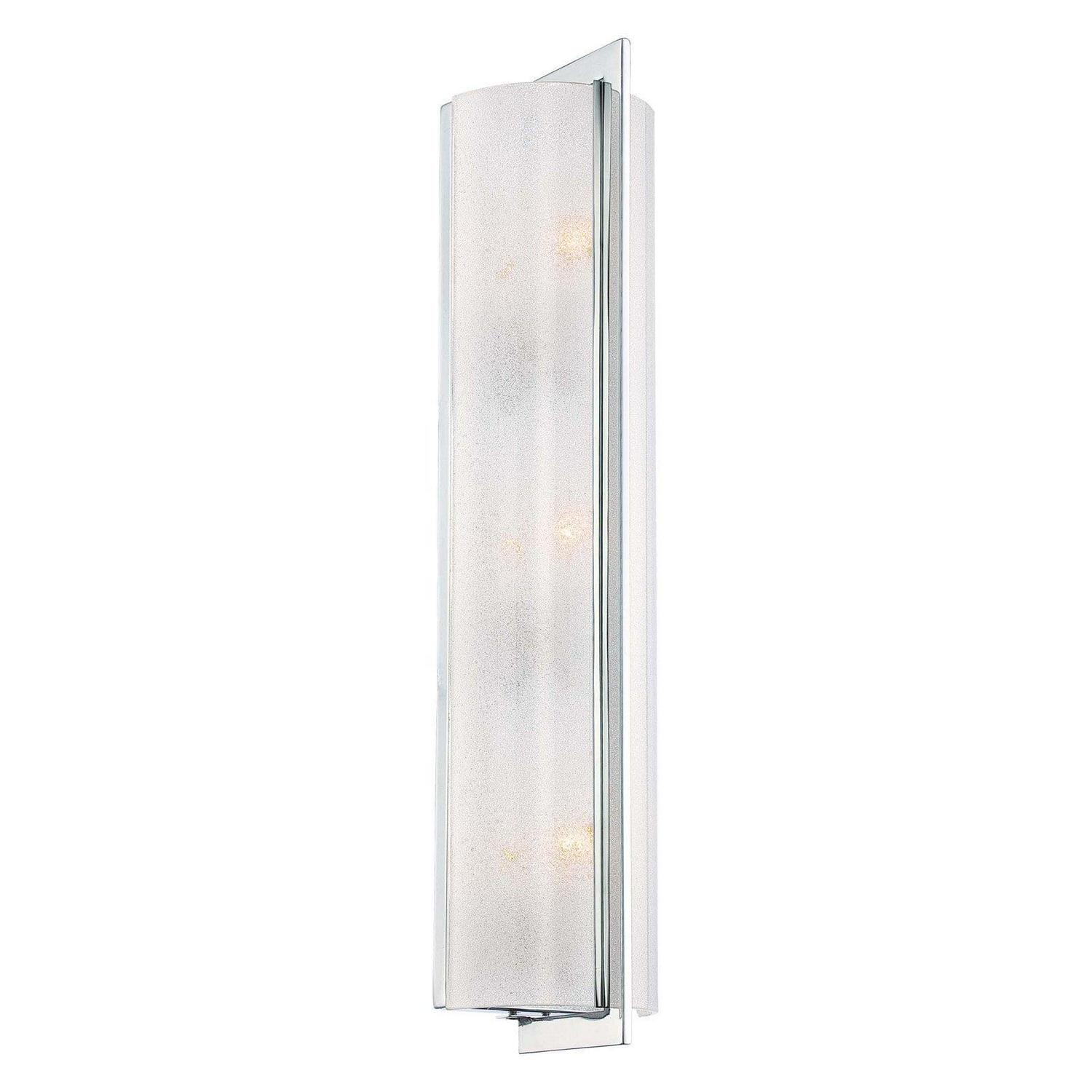 This 3-light wall sconce from Minka Lavery is a part of the Clarte collection and comes in a chrome finish. Light measures 5″ wide x 22″ high. Uses three candelabra bulbs up to 60 watts each. Damp Rated. Can be used in humid environments like bathrooms or covered outdoor areas.