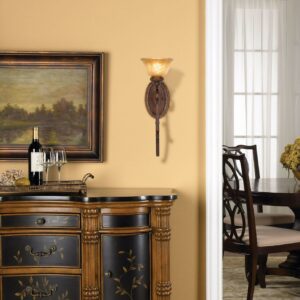 Minka Lavery-6350-177-Collection: Illuminati, Finish Color: Illuminati Bronze, Width: 8″, Height: 23.25″, Length: 21.5″, Depth: 9.25″, Backplate Width: 6″, Backplate Length: 9.13″, Lamping Type: Incandescent, Number Of Bulbs: 1, Wattage: 100 Watts, Moisture Rating: Dry Rated, Desc: Mounting Direction: Up / Shade Included: TRUE. ,-Illuminati – 1 Light Wall Sconce in Traditional Style – 23.25 inches tall by 8 inches wide