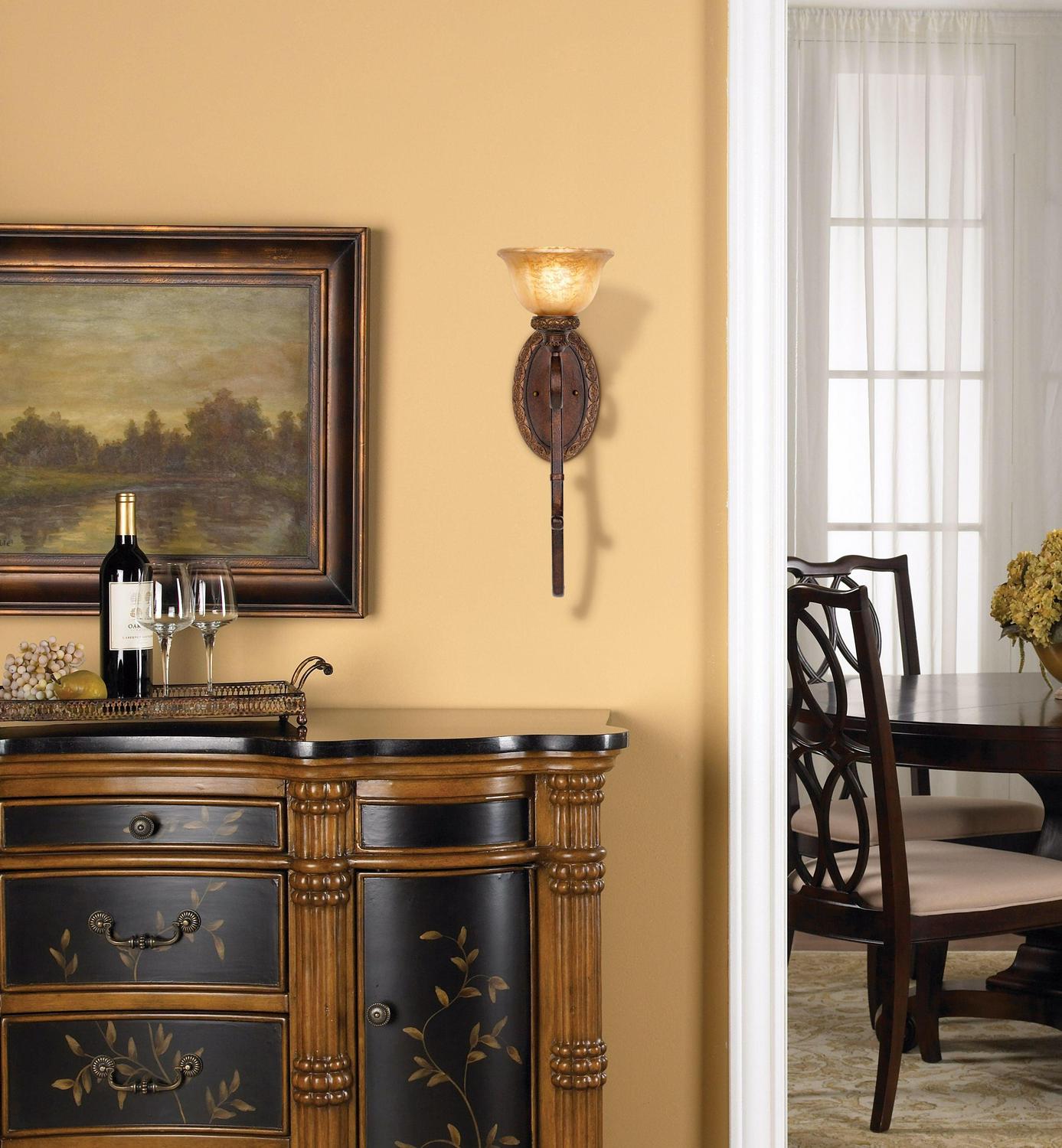 – Traditional one-light wall sconce from the Minka Lavery brand. Inspired by furnishings at the Hearst Castle.