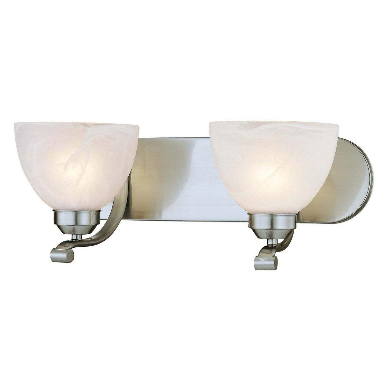 Minka Lavery-5422-84-Collection: Paradox, Material: Metal, Finish Color: Brushed Nickel, Width: 18″, Height: 7.13″, Depth: 8.5″, Backplate Width: 18″, Backplate Length: 4.5″, Lamping Type: Incandescent, Number Of Bulbs: 2, Wattage: 100 Watts, Dimmable: Yes, Moisture Rating: Dry Rated, Desc: Mounting Direction: Reversible / Shade Included: TRUE. ,-Paradox – 2 Light Transitional Bath Vanity in Transitional Style – 7.13 inches tall by 18 inches wide