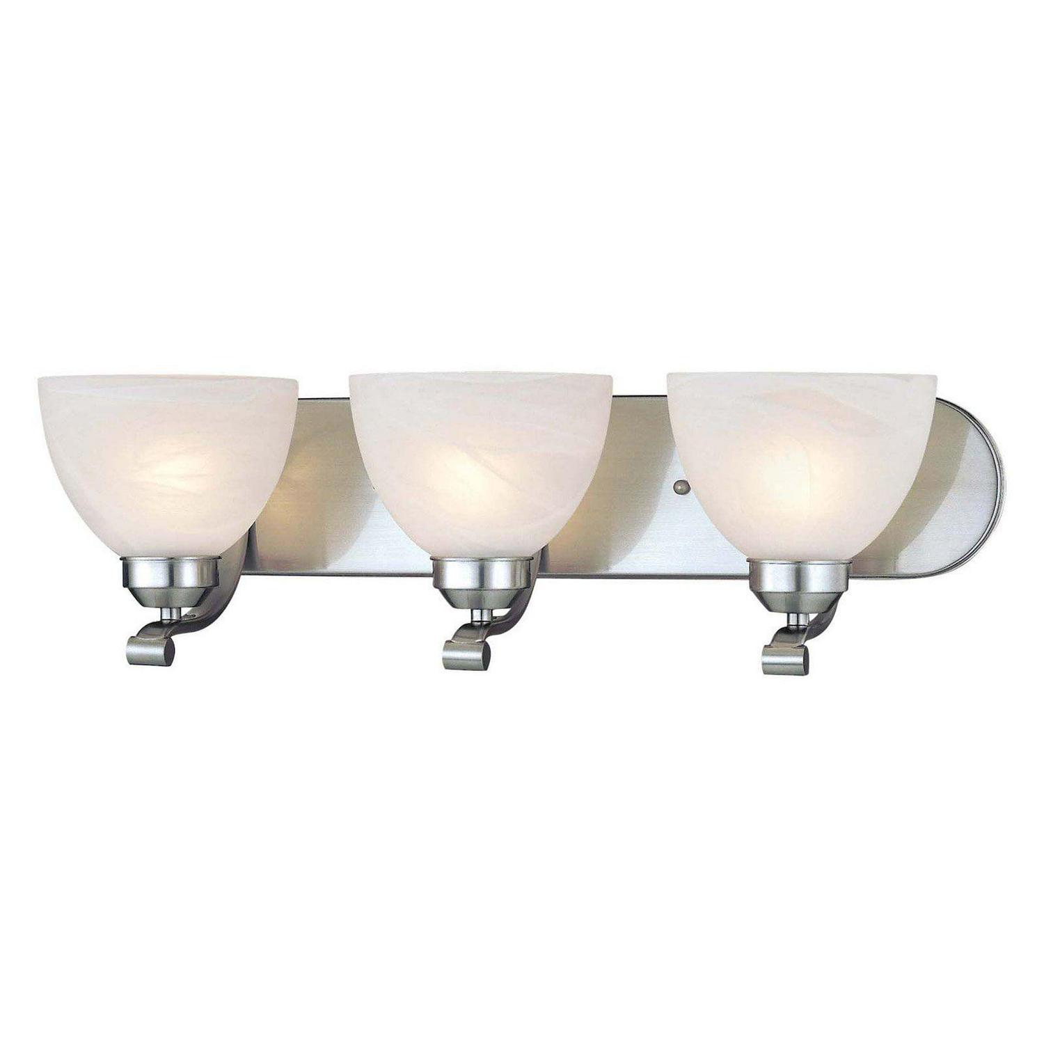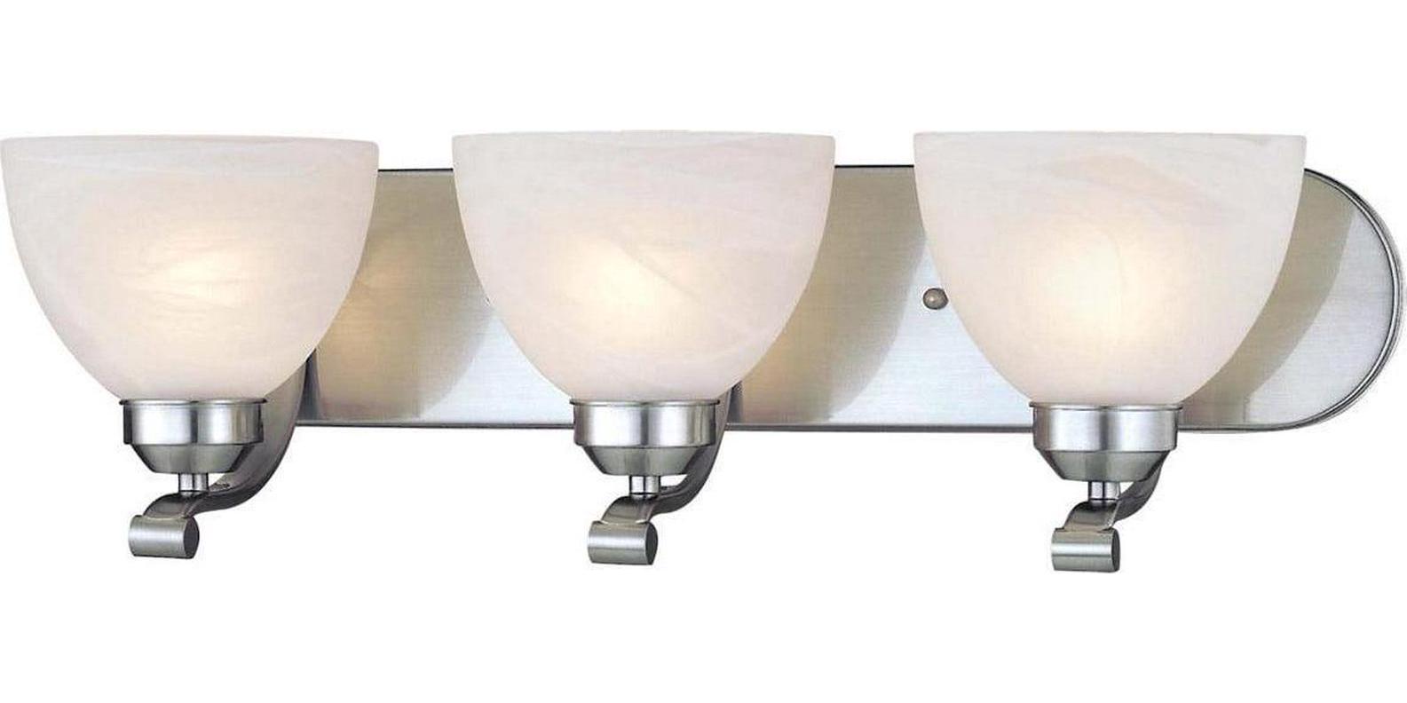 Minka Lavery-5423-84-Collection: Paradox, Material: Metal, Finish Color: Brushed Nickel, Width: 24″, Height: 7.13″, Depth: 8.5″, Backplate Width: 24″, Backplate Length: 4.5″, Lamping Type: Incandescent, Number Of Bulbs: 3, Wattage: 100 Watts, Moisture Rating: Dry Rated, Desc: Mounting Direction: Reversible / Shade Included: TRUE. ,-Paradox – 3 Light Transitional Bath Vanity in Transitional Style – 7.13 inches tall by 24 inches wide