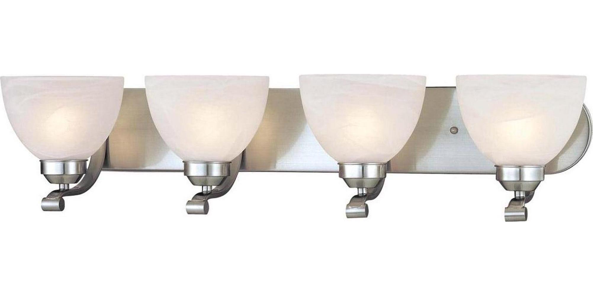 Minka Lavery-5424-84-Collection: Paradox, Material: Metal, Finish Color: Brushed Nickel, Width: 30″, Height: 7.13″, Depth: 8.5″, Backplate Width: 30″, Backplate Length: 4.5″, Lamping Type: Incandescent, Number Of Bulbs: 4, Wattage: 100 Watts, Moisture Rating: Dry Rated, Desc: Mounting Direction: Reversible / Shade Included: TRUE. ,-Paradox – 4 Light Transitional Bath Vanity in Transitional Style – 7.13 inches tall by 30 inches wide