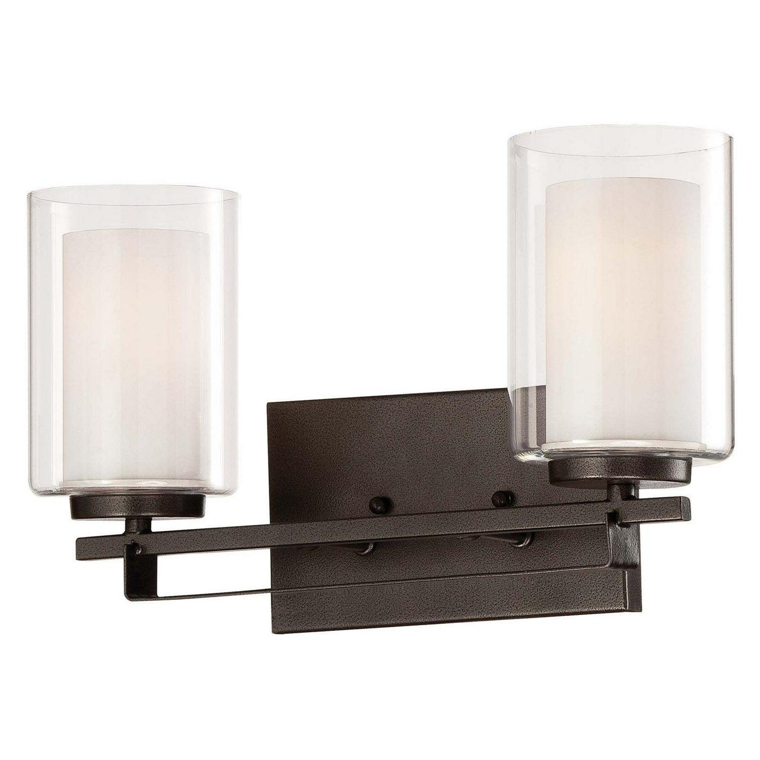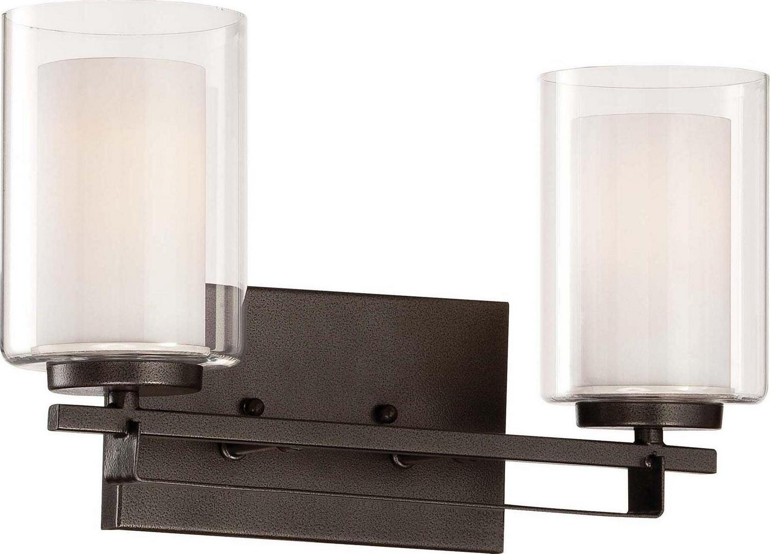 Minka Lavery-6102-172-Collection: Parsons Studio, Material: Steel, Finish Color: Smoked Iron, Width: 15″, Height: 8.75″, Depth: 5.75″, Backplate Width: 8″, Backplate Length: 4.5″, Lamping Type: Incandescent, Number Of Bulbs: 2, Wattage: 100 Watts, Dimmable: Yes, Moisture Rating: Dry Rated, Desc: ,-Parsons Studio – 2 Light Bath Bar in Transitional Style – 8.75 inches tall by 15 inches wide-Smoked Iron Finish